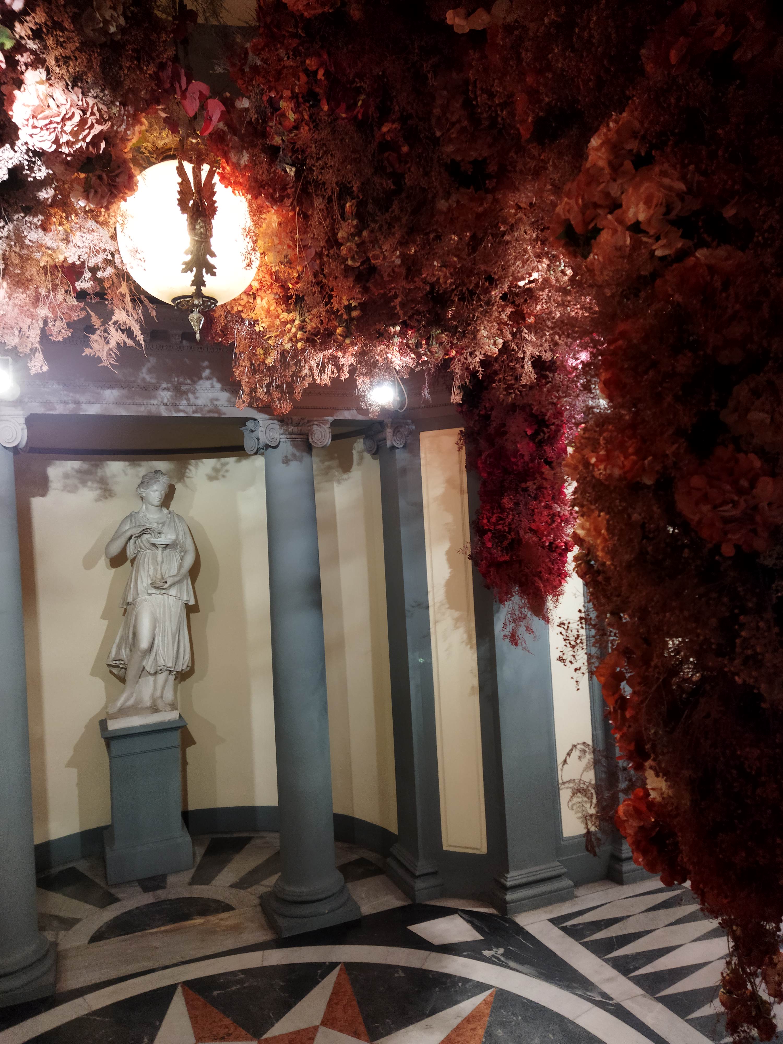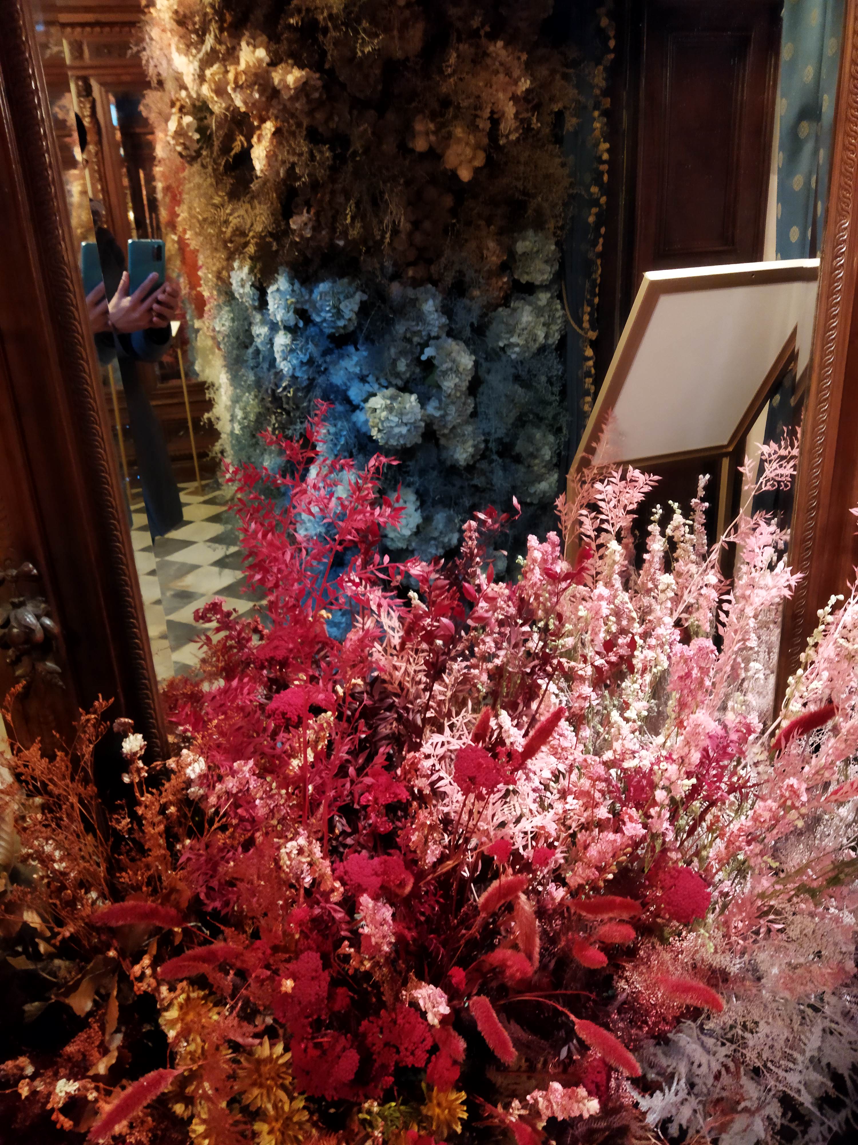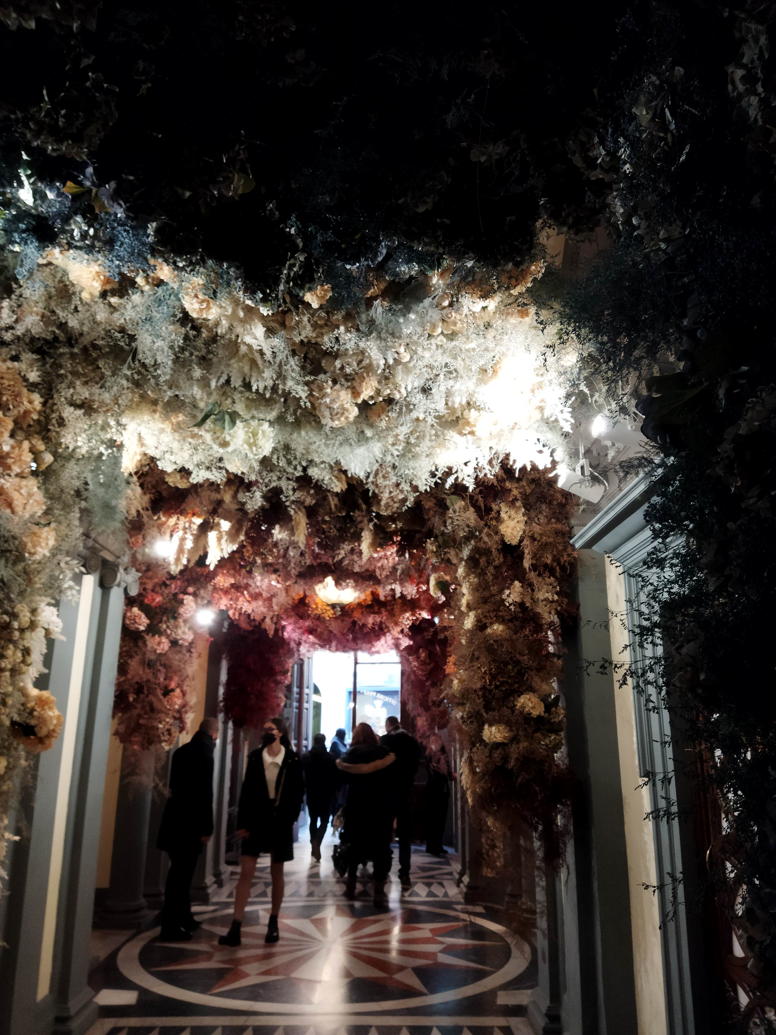 そしてメインホールには、これまたグラデーションになったドライフラワーでのツリーが。これがもう、大理石の幾何学模様の床、ヴォールト天井、すべてと調和してすべてが美しく・・・製品そっちのけでごめんなさい💦
