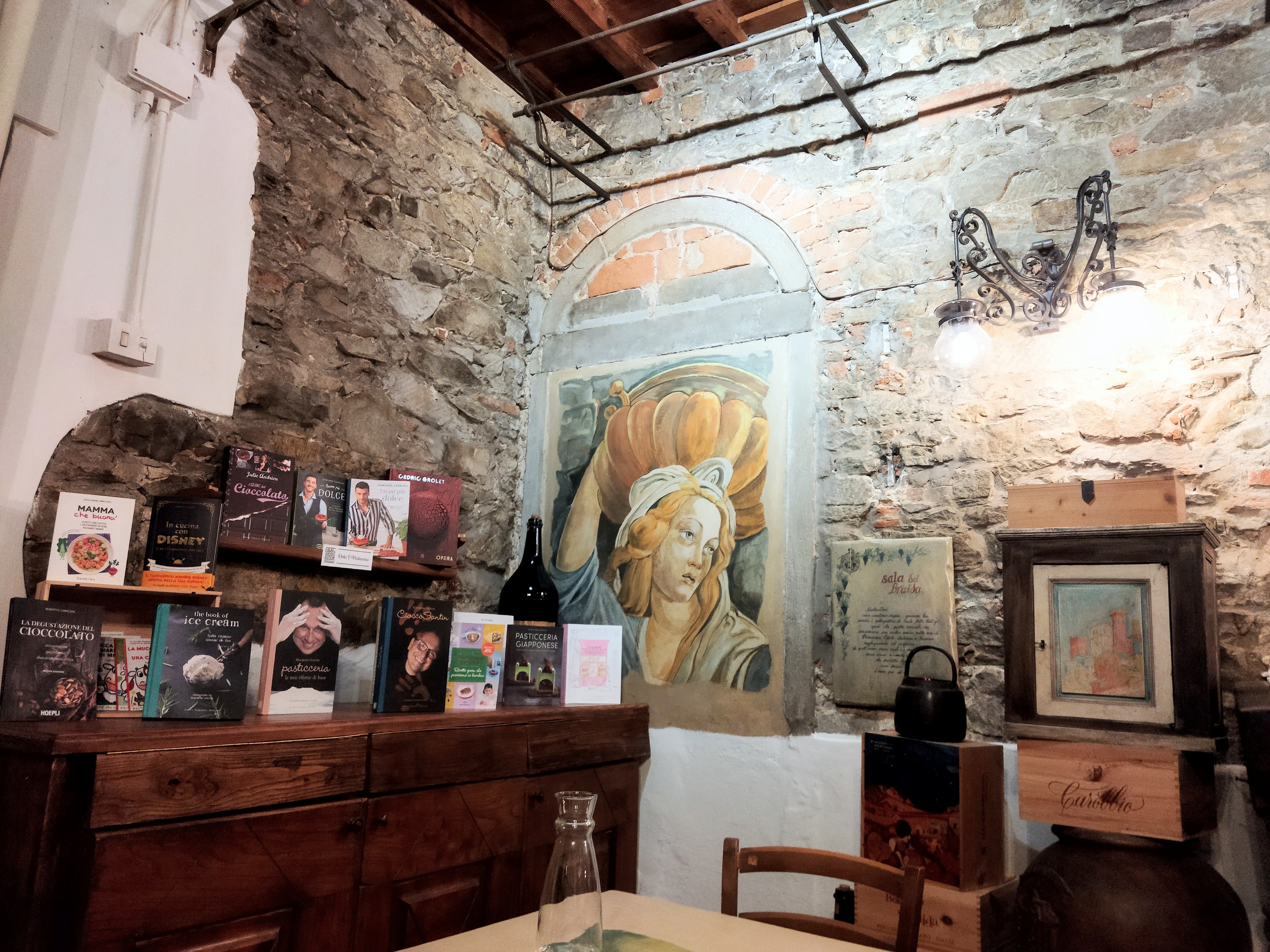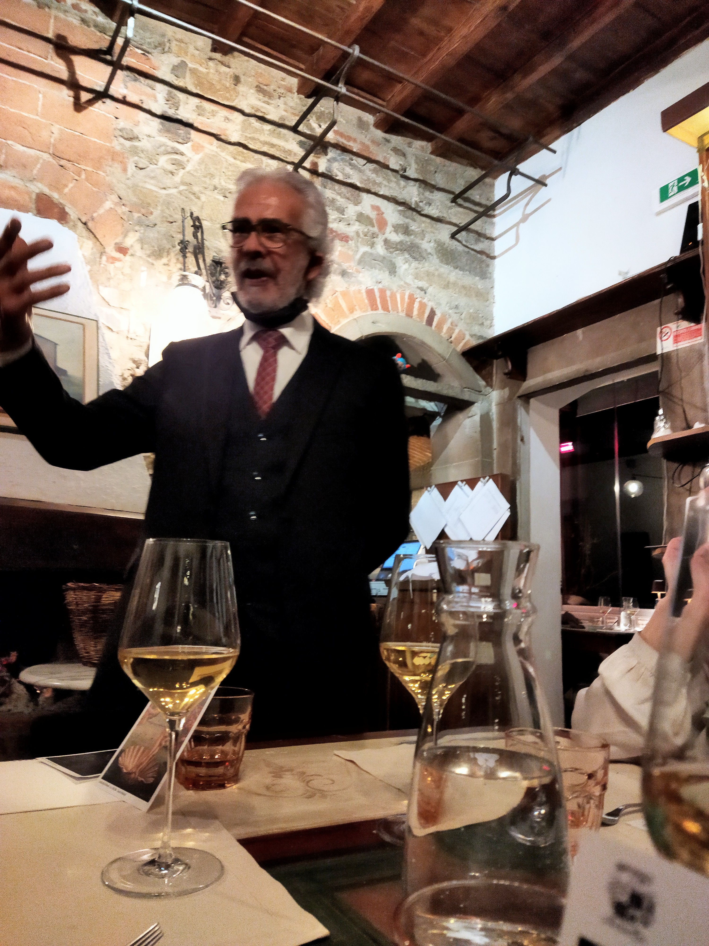 おらが村の友人4人と1台の車に乗り、目的地のフィレンツェまで。フィレンツェと言っても旧市街でなく、東北の丘の上にあるセッティニアーノというエリアにあるエノテカです。実はここには舅のお墓があり、前日にお参りに行った時に私が「この店、前から気になってるのよね」とダンナに言っていた店だったのでした!なので店の前は狭くて駐車できないので、手前の教会のある広場かその先の墓地の駐車場まで行かないとダメよ~などと運転する友人に言っていたものの、フィレンツェに入らずに手前の道から丘を上ってしまったために迷うこと数分。駐車場所はすぐに見つけられ、20時30分のスタートになんとか間に合ったのでした。