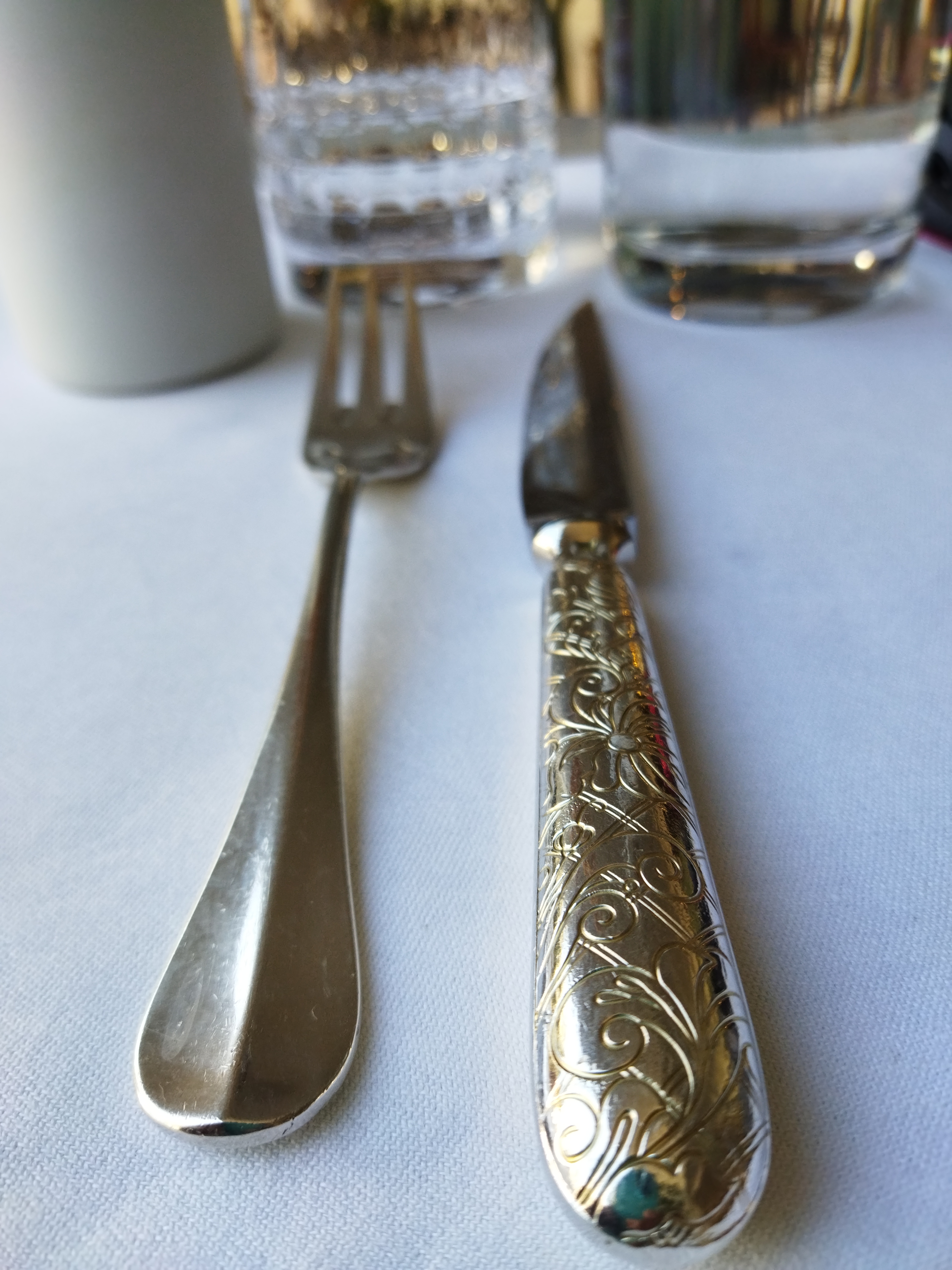 座ってから気づいたのは、ここはミシュランガイドにも何度も掲載されている名店!お値段に少しビビりながらも時間もたっぷりあったので、めいっぱい堪能してやろうとピノ・ネーロのグラスワインと、ハムとチーズの盛り合わせをオーダーしました。すぐに運ばれてきたのは、上品な銀製のカトラリー、そしてサービスの突き出し。ジャガイモのゆるいピューレにスパイスが効いた生サルシッチャが馴染み、とっても美味しい。