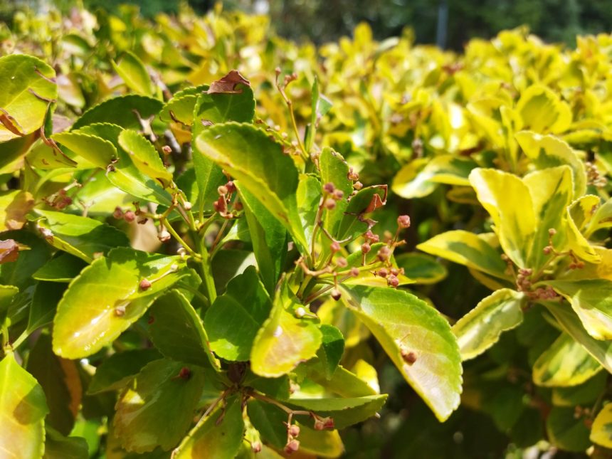 床が水玉模様になっただけじゃなく、やっと全面が濡れているでしょう?・・・と喜んで写真を撮ってつかの間、10分ほどでその夢のような光景は見られなくなってしまいました(号泣)。恵みの雨=水滴が光る葉っぱの写真なんか撮りたいな!と庭に出ても、TOP写真のように・・・す、水滴どこや~状態でした。