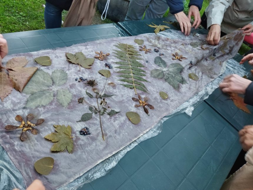 今回誘ってくれたのは、「植物スタンプと染色」。夏に開催されたワークショップで私は行けなかったのですが、その投稿に超いいね!をつけたのを覚えていてくれたよう。今回のは団体のためにだけ開催するものだったので告知はなかったのですが、数人追加しても良いとのことだったので私に声をかけてくれたのでした。