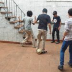 全員揃ったところで、自己紹介とクリスティーナから大まかな植物の染色とプリントについての説明。今回は初心者向けの体験の会なので、ベースとなる布の「mordenzatura = 天然素材の布にプリントしやすくなるように行う下処理」と、樹皮での染色は事前にクリスティーナが行ってくれていました。染色なしでもプリントはできますが、この染色したもののほうがプリントが見えやすいとの事。