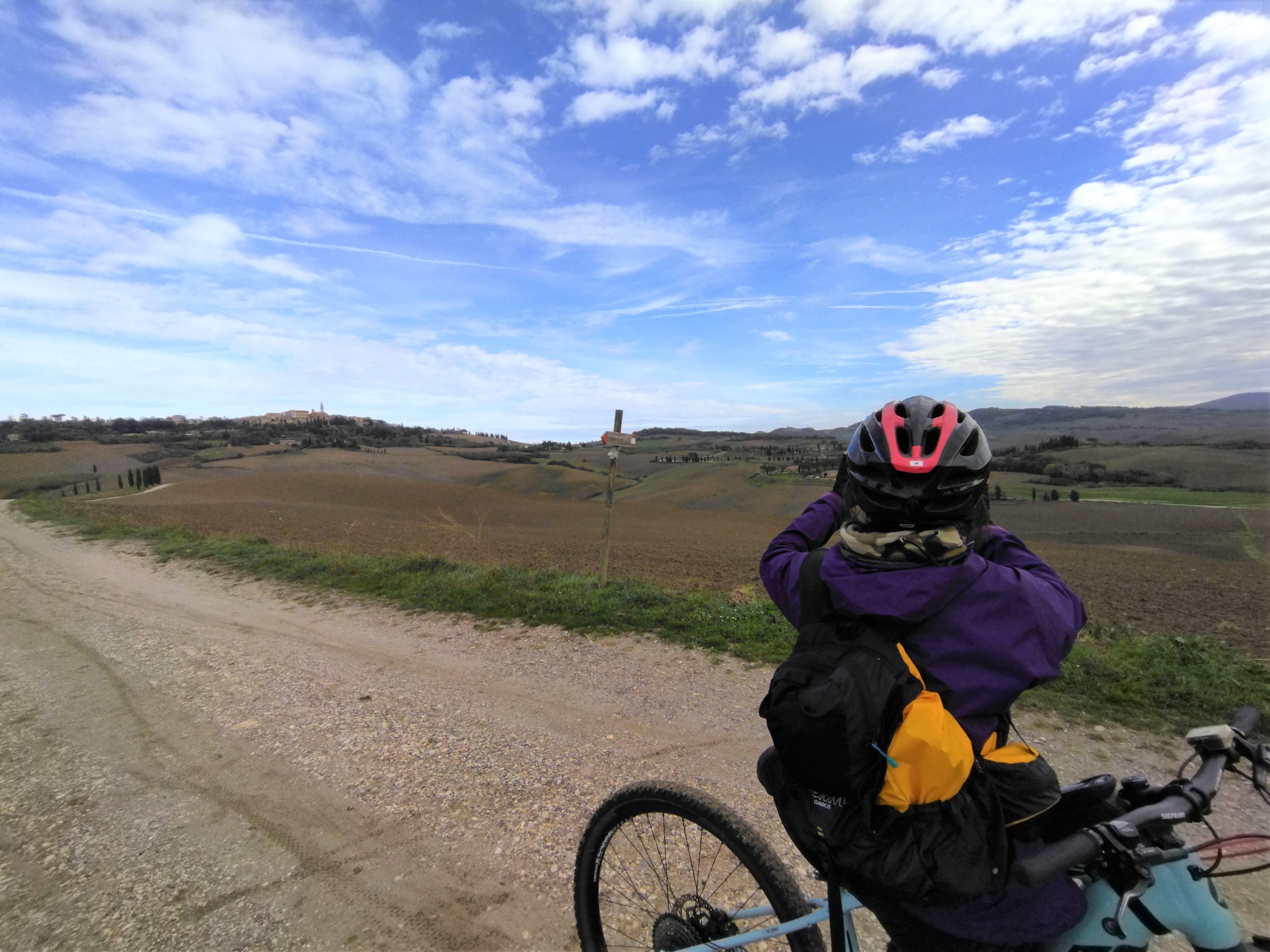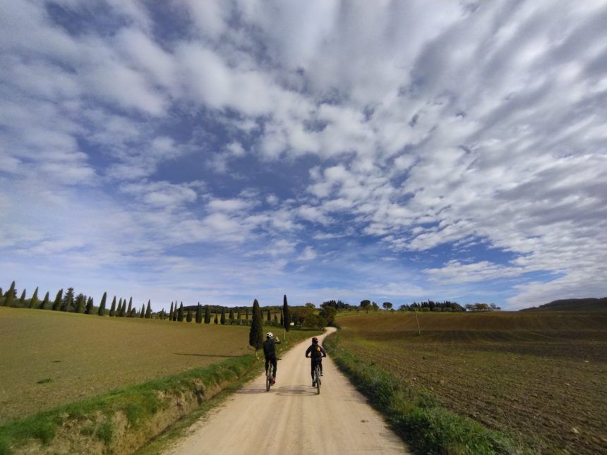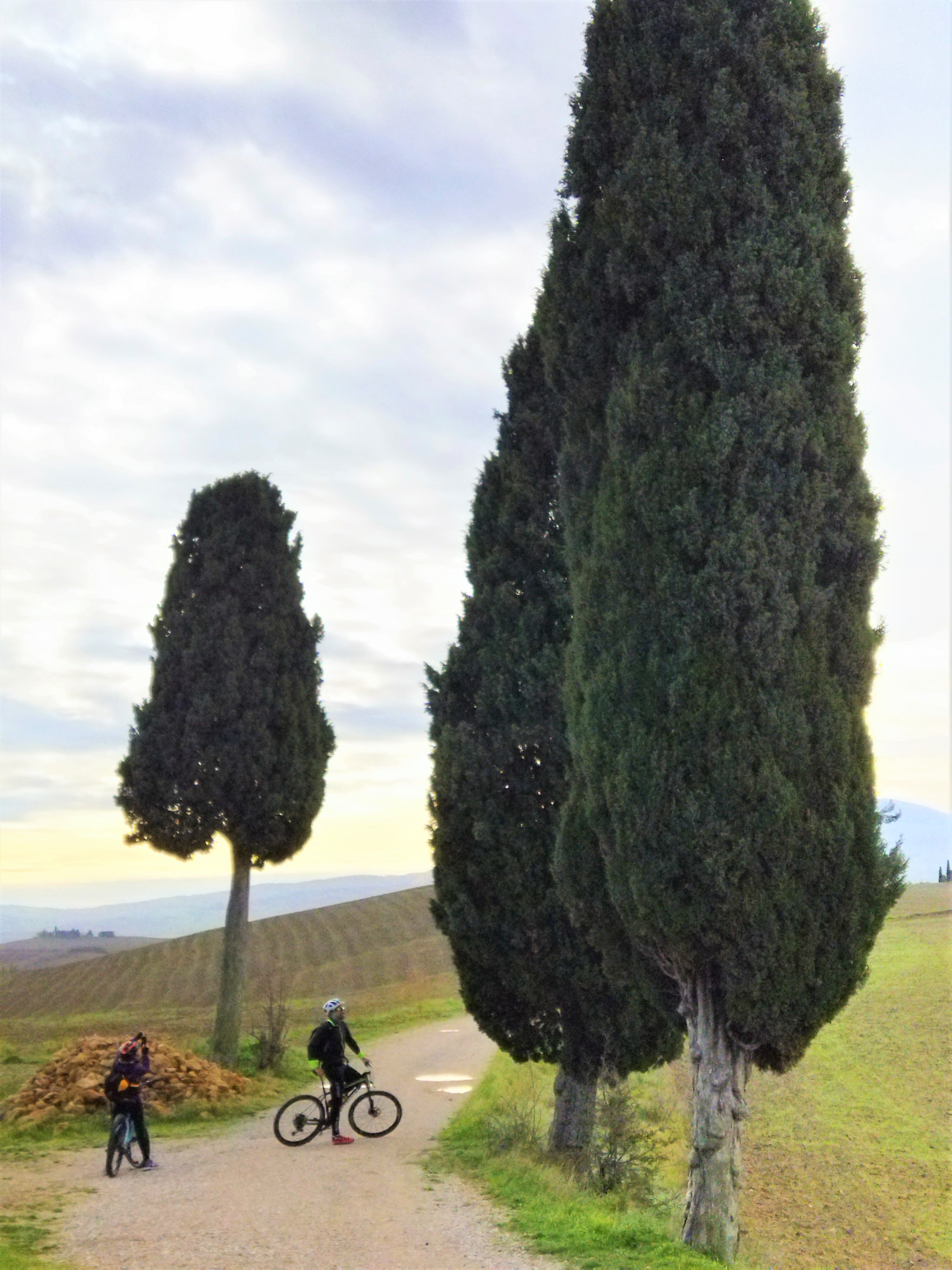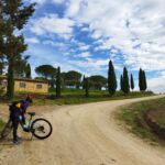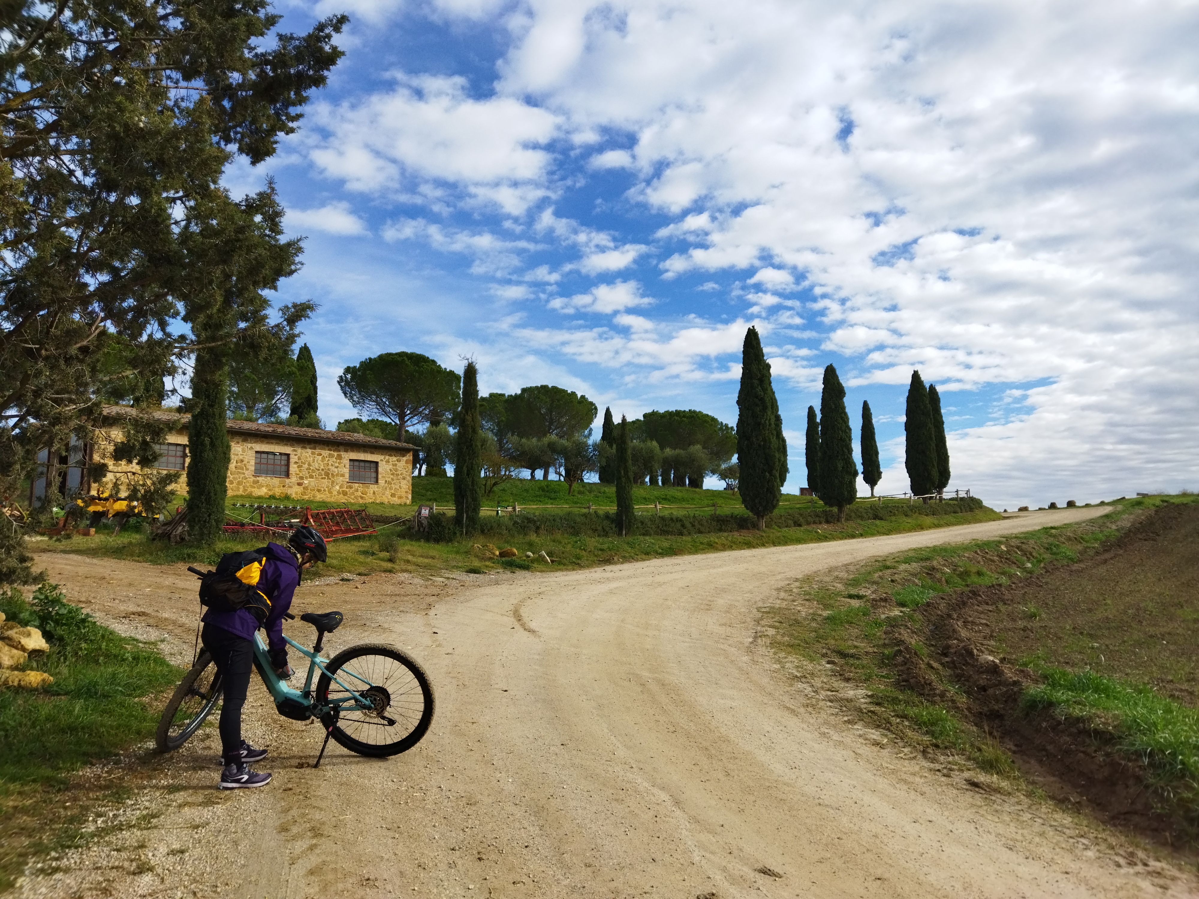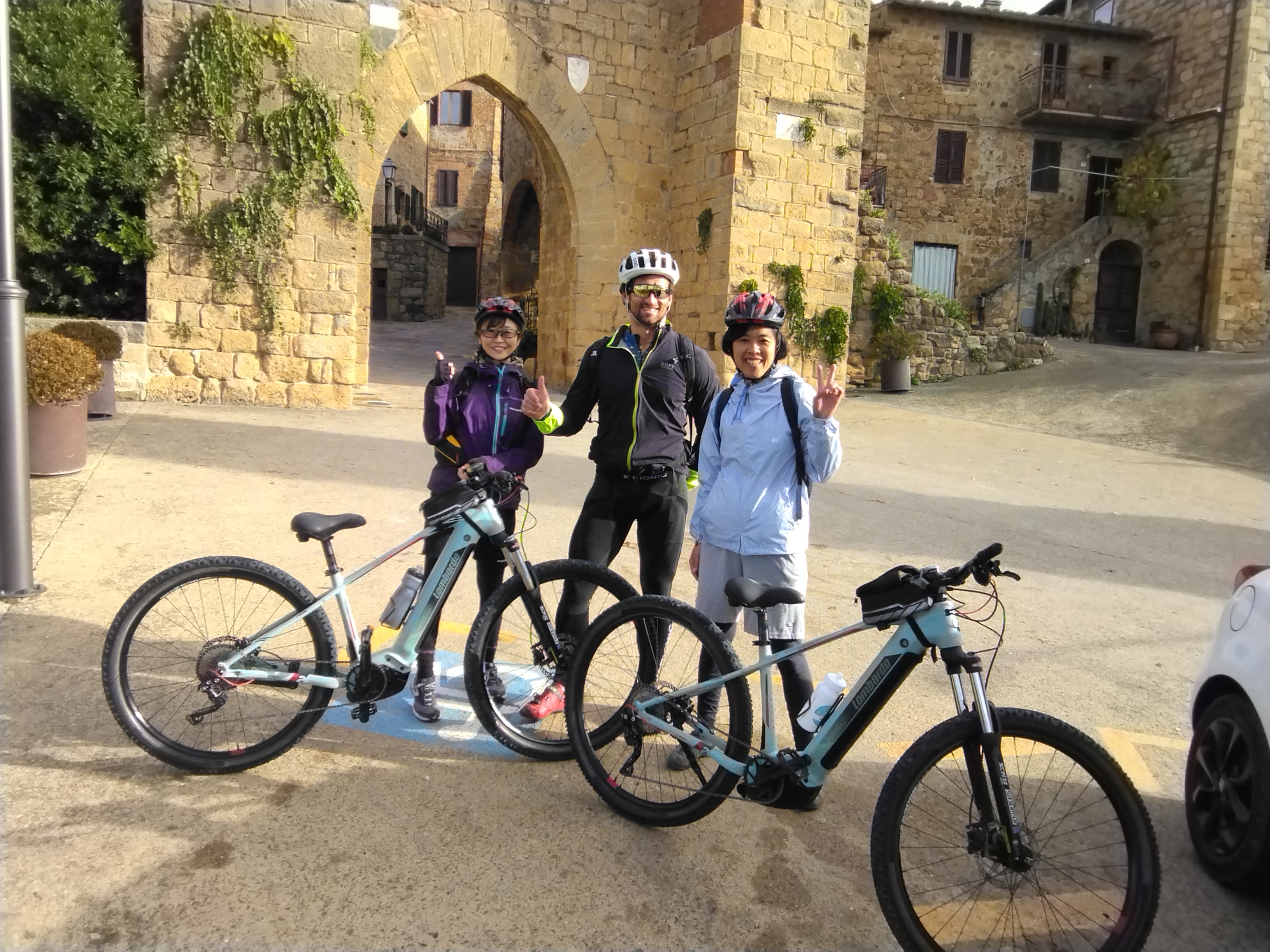 トスカーナのシンボル的な田園風景が果てしなく広がり、2004年に世界文化遺産にも指定されたトスカーナ南部のオルチャ渓谷。私はダンナのばーちゃん村があることで20年以上通っていますが、何度行っても、何度見ても、最初に訪れた時の感動がよみがえるほど特別な場所。コロナ後に戻って来たお問い合わせも、半数以上がオルチャ渓谷という人気ぶりです。そして、コロナ後の初の同行通訳のお客様も・・・今まではほとんどがハイヤーを使って村やワイナリー、要塞などを周っていますが、今回は、「E-Bike」つまり、電動アシスト付きマウンテンバイクという自転車ツアーのリクエスト~数年前に友人が会長を務める協同組合の新サービスとして始まったこのツアーに、待望のお客様をご案内することができました!