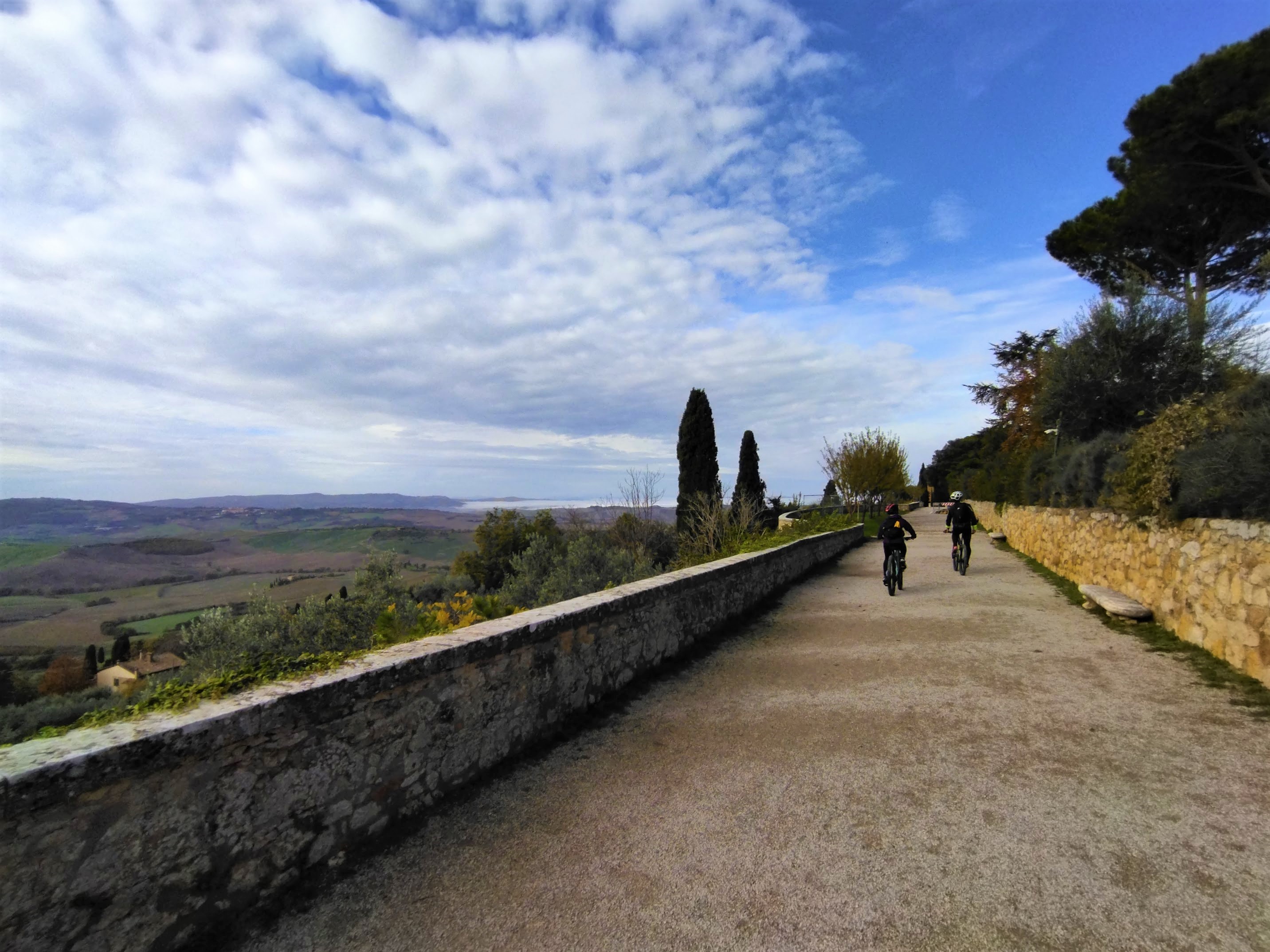 キウージーキアンチャーノ駅にお迎え、モンティキエッロへ。到着後、電動アシスト付きMTB(E-Bike)にてガイド付きオルチャ渓谷ツアー・フルデイ