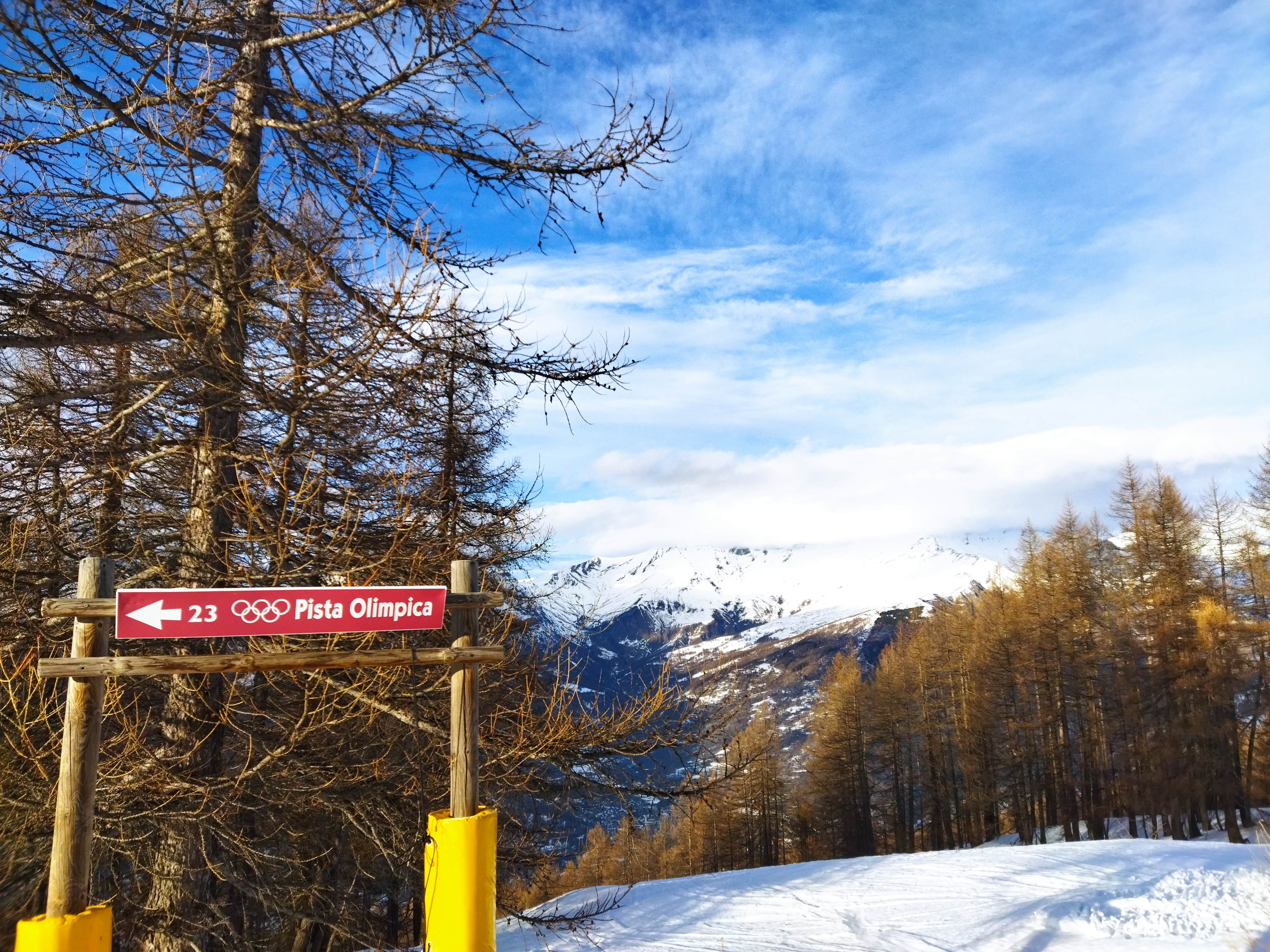ミラノから直通のフレッチャ(高速列車)で1時間40分、トリノから50分。駅から無料バスでメインのゲレンデ・カンポスミスまで15分ほど。バスの時刻表はこのページより。