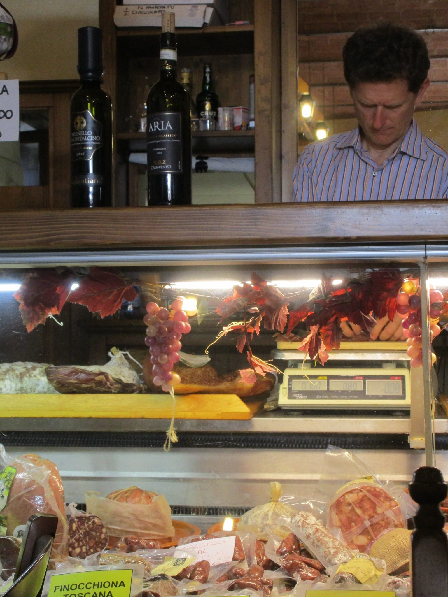 チェルタルド のメインストリート、プレトーリオ宮近くにあるのがこのお店。外席がよかったけど満席で、中の席で食事しましたが、中もそれほど広くなく、私たちが入ってからほどなく満席になりました。店内の写真をほとんど撮ってなかったのですが、 ワインを始め、ちょっとしたお土産になる食材 もあります。カウンターには真空パックになったサラミ類も。ちなみにパニーノを作ってテイクアウトはできません(食事中、リクエストしたお客さんがきたけど断られてました)