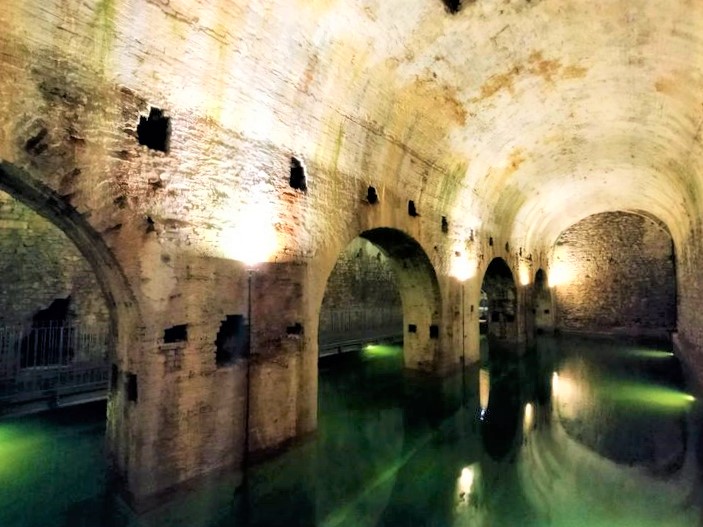 建設は1500年代末~1600年代初頭。当時はリヴォルノに続くトスカーナ公国で2番目に大きな貯水槽だったそうです。ここは毎日10時~24時(冬は20時)まで開いていますが、緑に浮かび上がる照明がある夜がおススメです。翌朝に建物の中にも入ってみましたが
