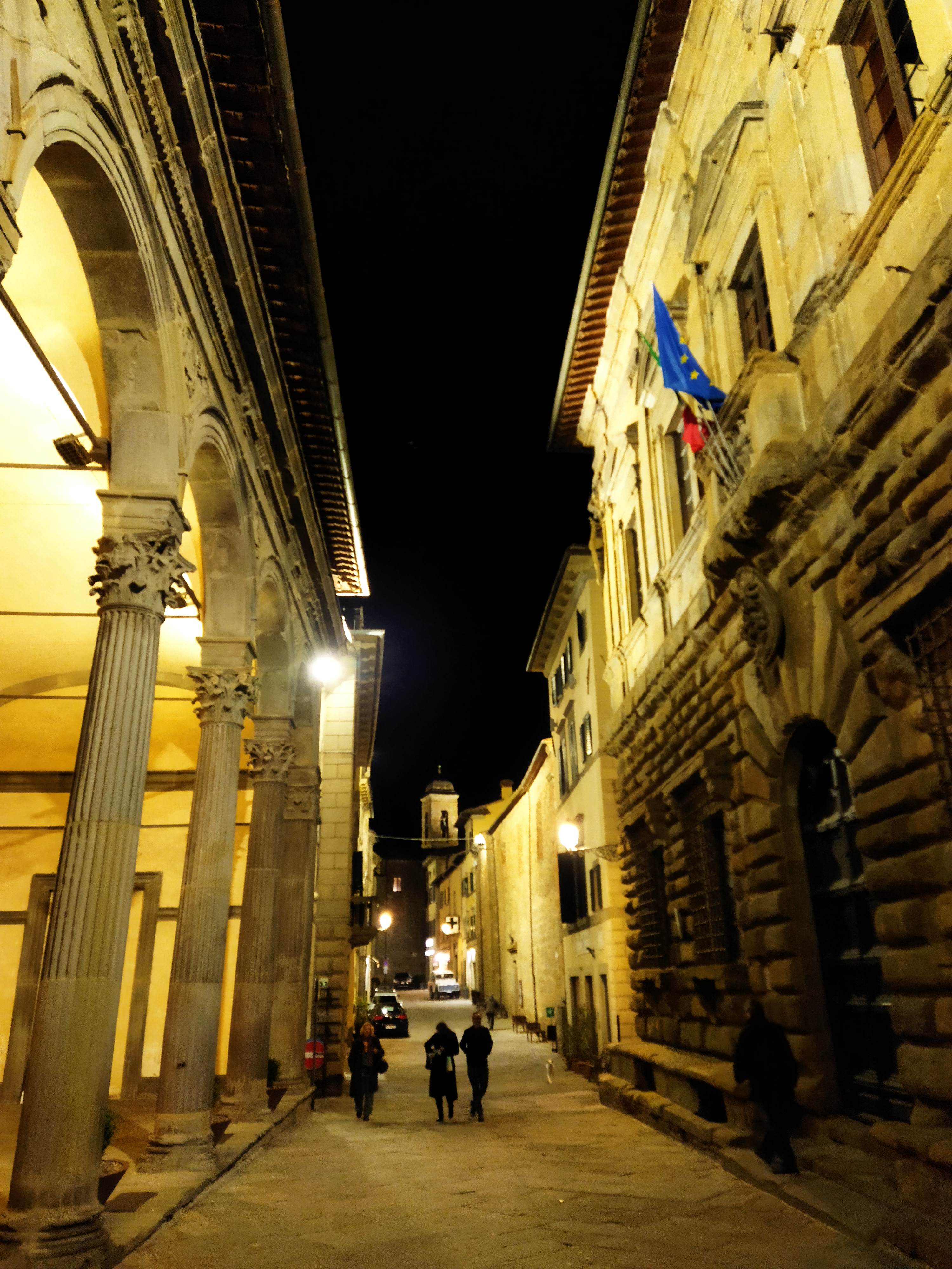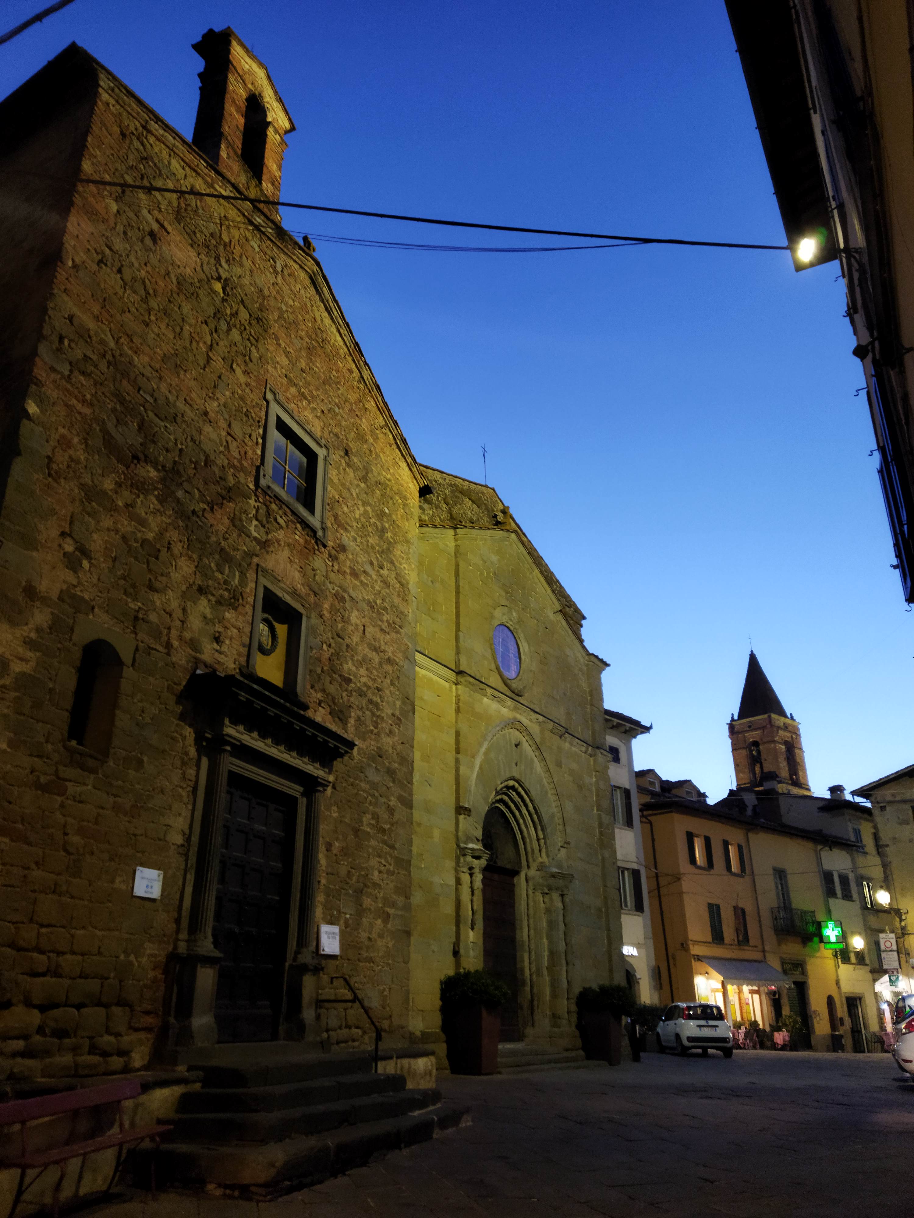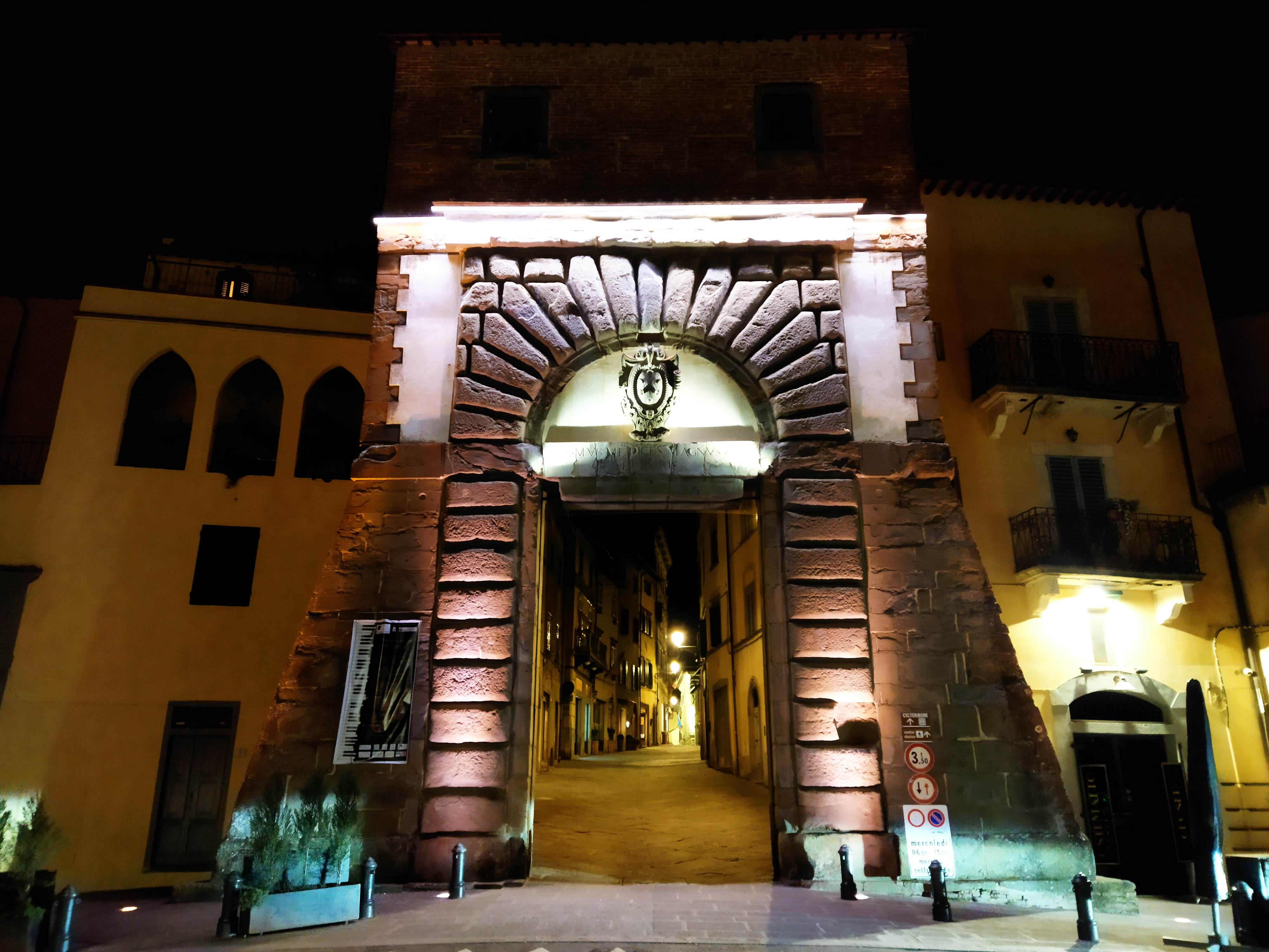 着いたのは夜。アレッツォからRFI線というトレニタリアではない電車で行ったので、駅からはえっちらおっちら20分ほどゆるやかな坂道を上っていきます。他の村と同様で高みにあり、かつては城塞があった村。村の南側にあるローマ門から旧市街へ入ります。