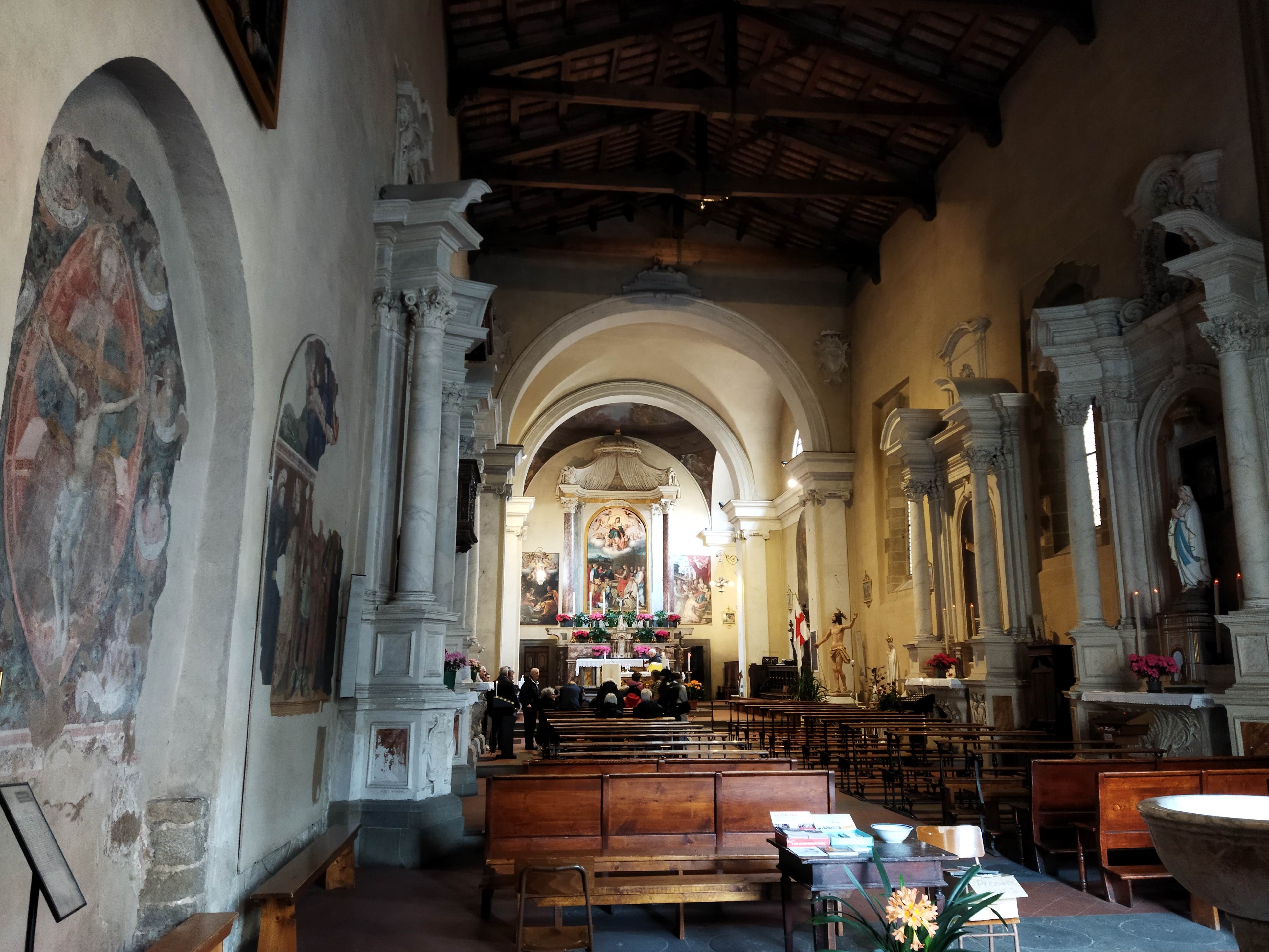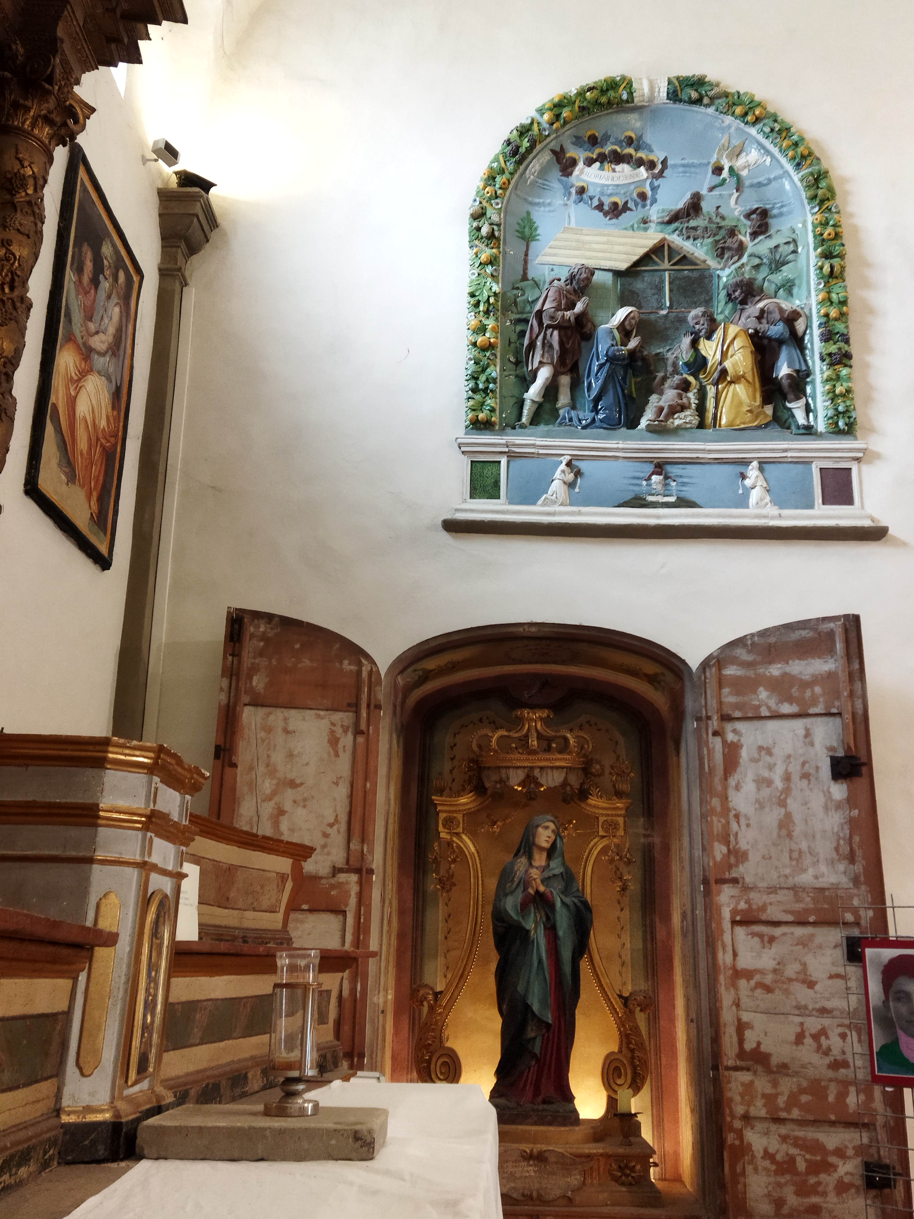 教会はその他にも、ディ・モンテ宮挟んでサンダゴスティーノ教会と逆側にあるミーゼリコルディア教会、そしてフィレンツェ門近くのサンタ・キアーラ教会があります。後者はロッビア工房の色彩テラコッタが数多く残っていますので、ロッビア工房ファンの方は必見。