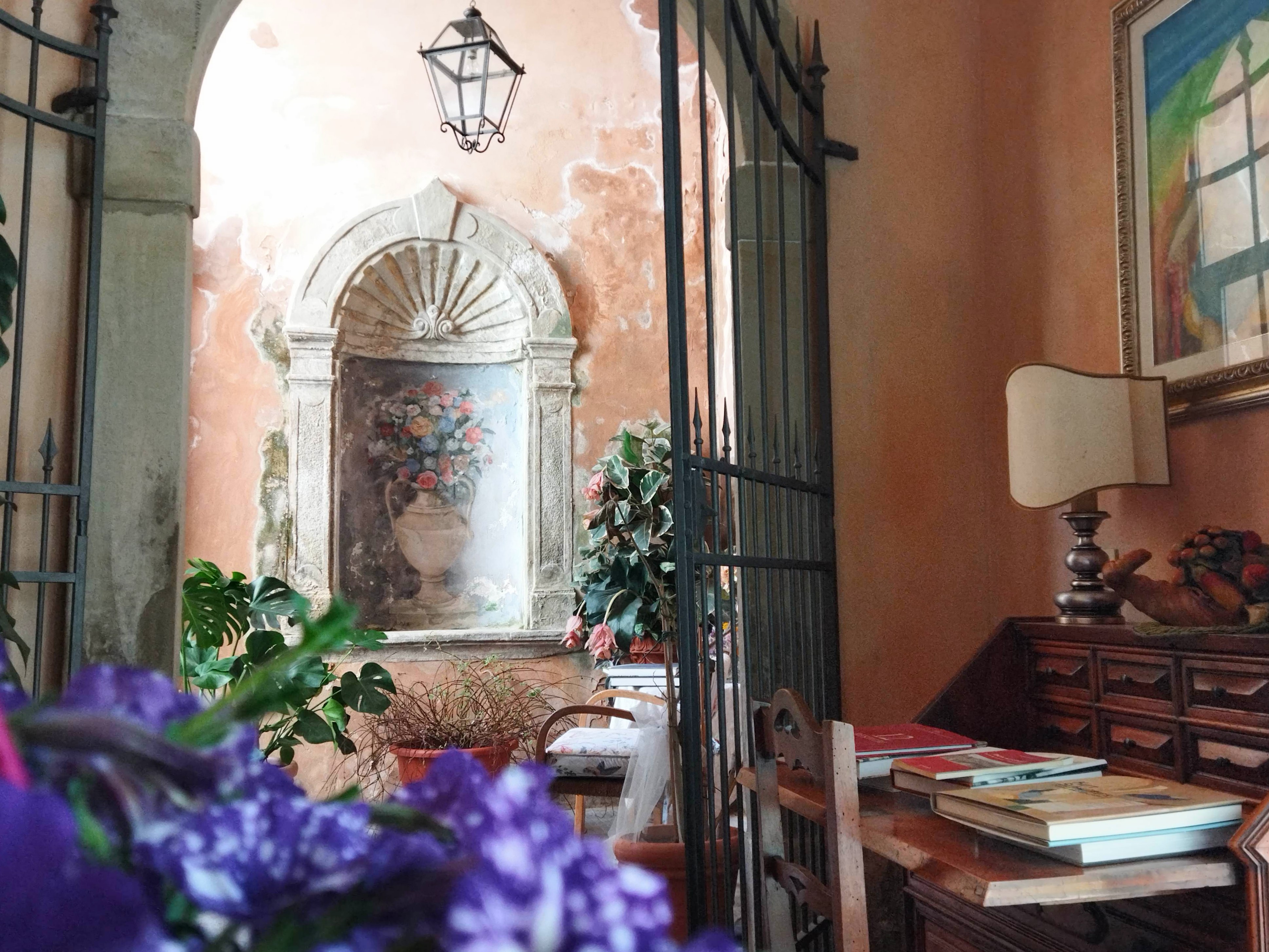 こちらがオーナーのアンナマリアさん。見るからに上品、でもとてもチャーミングで気さくな方で、すぐに打ち解けてしまいました。事の始まりは2003年、使わない部屋が多く維持にも悩む彼女に邸宅レジデンスのアイディアが浮かびます。というのも、彼女は旅好きで世界各国を訪問しましたが、いつも早く家に帰りたい!とホームシックにかかっていました。だからここは、旅人が自分の実家に帰ってきたような場所になれば・・・しかし、「こんな山奥に、マッラーディに誰が泊りに来るんだ?」と半信半疑だったのはご主人。ともあれやってみよう!とスタートして数年、インドや南米からの問い合わせにはアンナマリアさん当人も信じられなかったと言います。2011年には営業日全てが満室になったそうですが、残念ながら、その頃にご主人も亡き人となってしまいました。