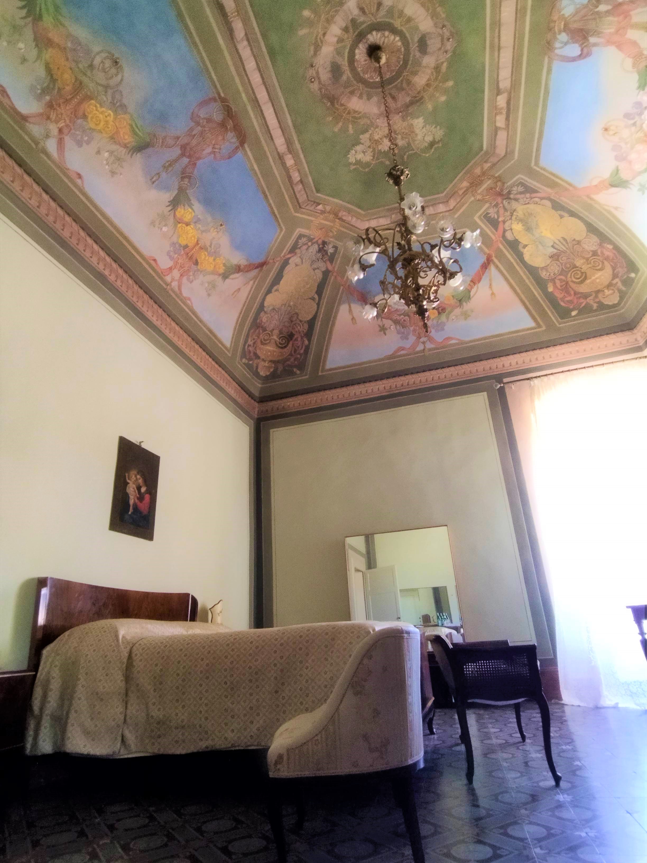 こちらは天井のフレスコ画が見事は広々としたスイートの寝室。もう1室には、外観は大きなクローゼットは扉を開けるとキッチンもあるので、自炊もできます。