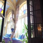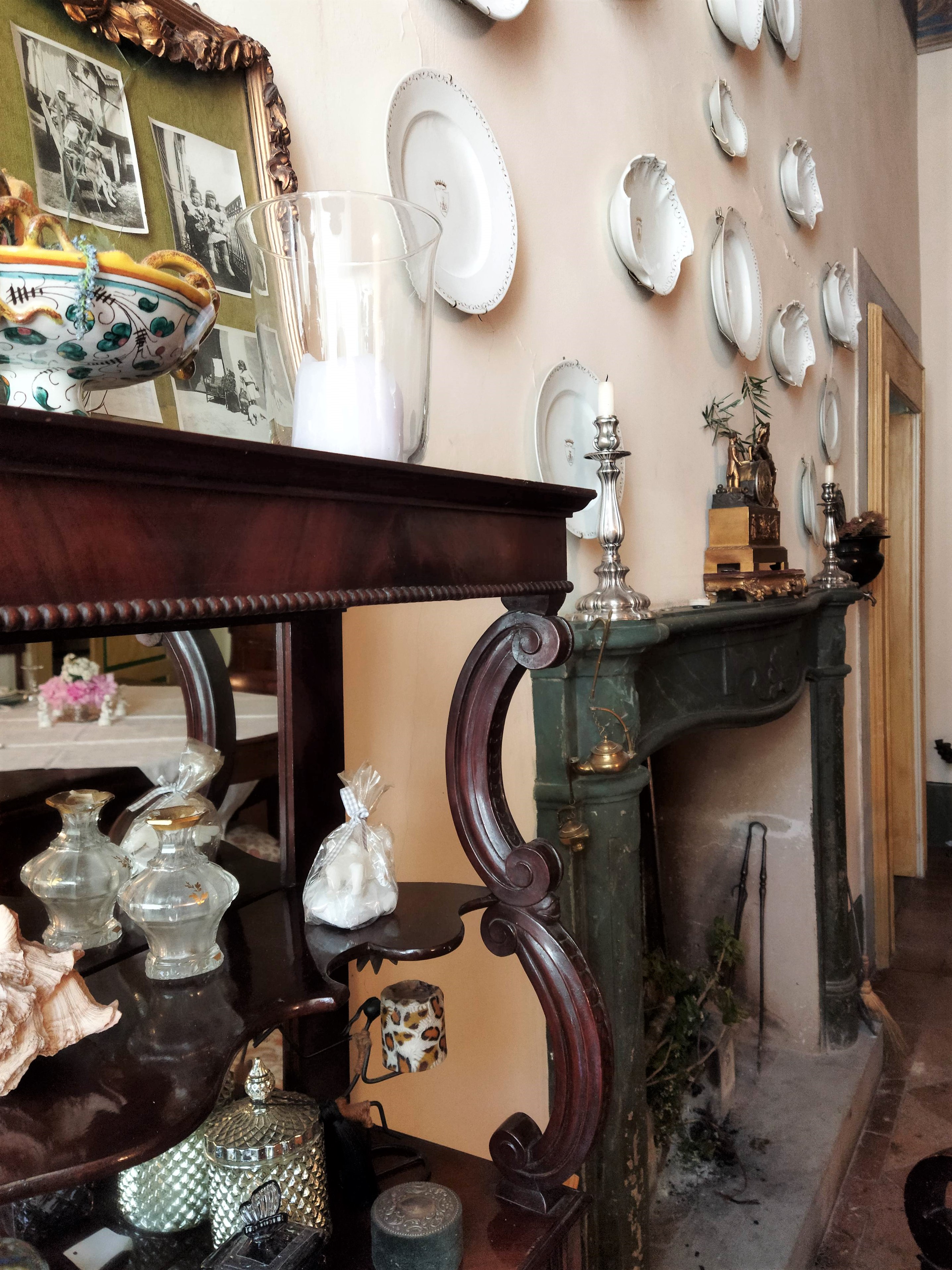 最初に通していただいたのは、朝食ルーム。ここでお手製のお菓子を頂きましたが、どれもとっても美味。なによりもこの大きな暖炉やアンティークな調度品に囲まれ、ここに座っているだけでもう夢心地です。そして面白いのが昔の暖炉、なぜこんなに大きいのかというと、暖炉の中が一種のリビングなんです。火を囲むようにベンチが設置され、それぞれにワインを置く穴が壁に開いているの、分かりますか?
