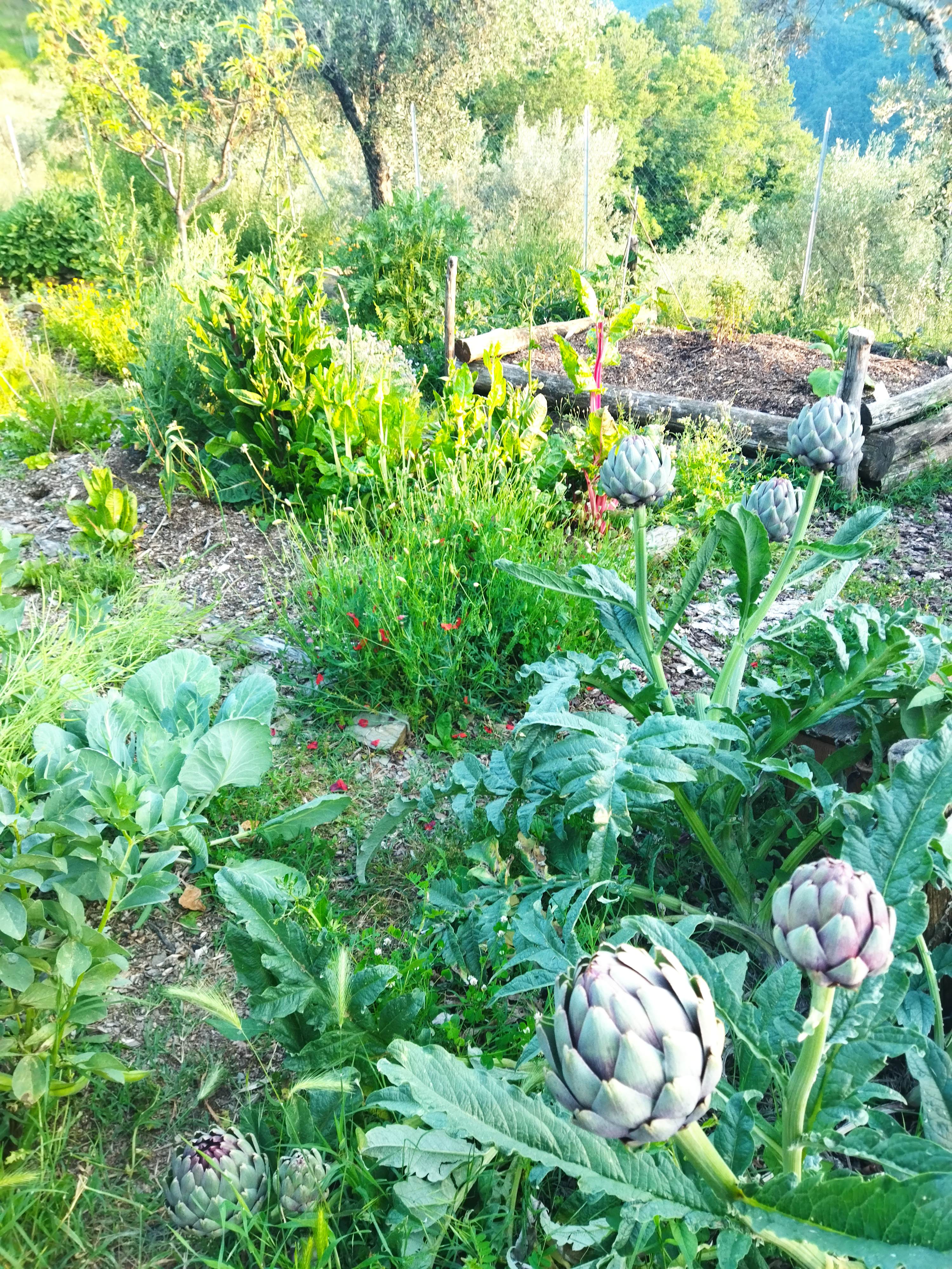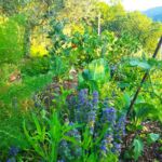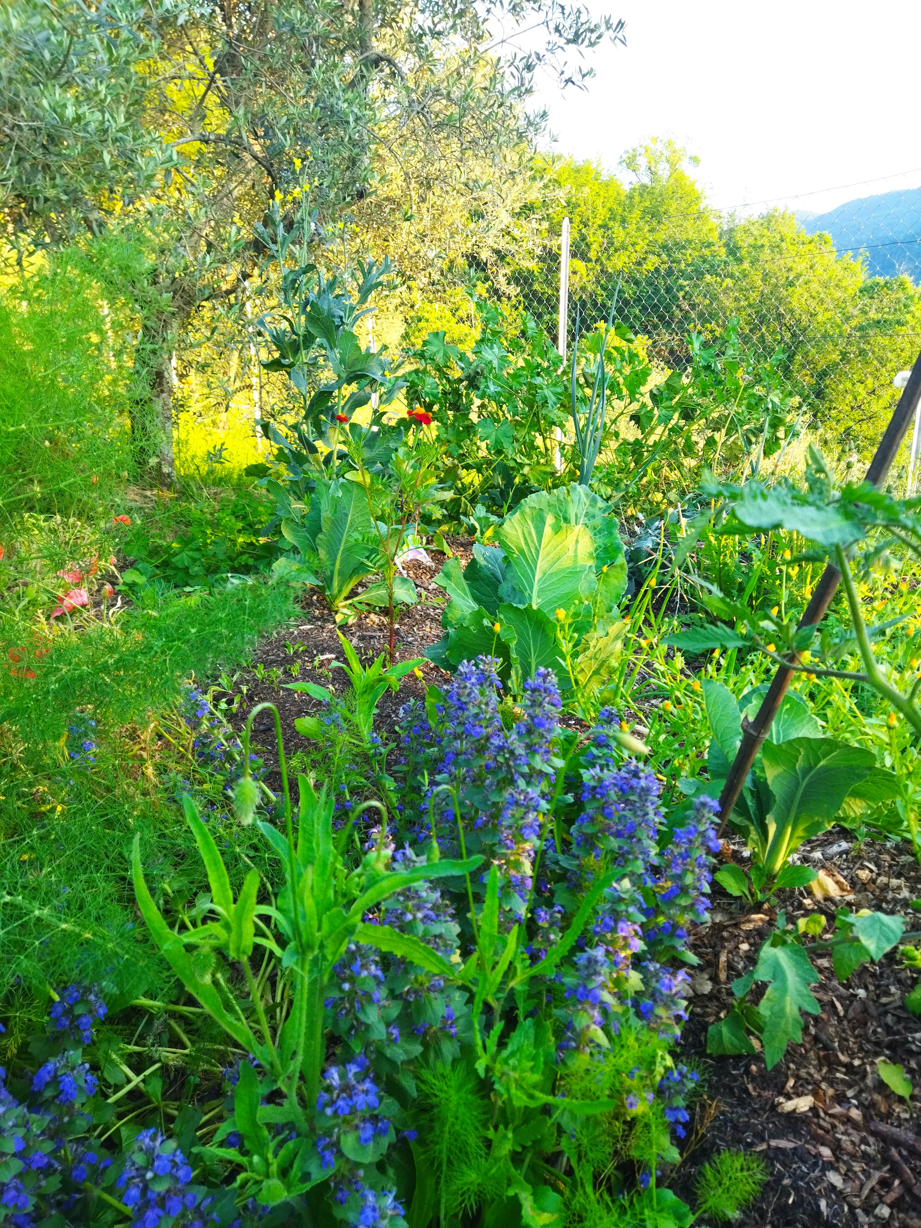 いろんな花、ハーブ、野菜が共同生活をしている、そんな感じの畑。いや、畑という感じが全くしません。私の周りには畑をしている人はたくさんいて、隣の畑エキスパートのエウロおじさんはうちの庭を見て「畑するなら耕さないとダメだよ」と言いますが、パーマカルチャー的にはNG。それは、そこにいる微生物などの生態系を壊してしまうから。でも岩の多い固い土地だったここが、どうしてこんなフワフワな土壌になって、いろんな植物がここまですくすくと育つのか・・・私は農業や科学的なものはド素人ですが、いやだからこそいろんな疑問がわいてきて時間がいくらあっても足りません。