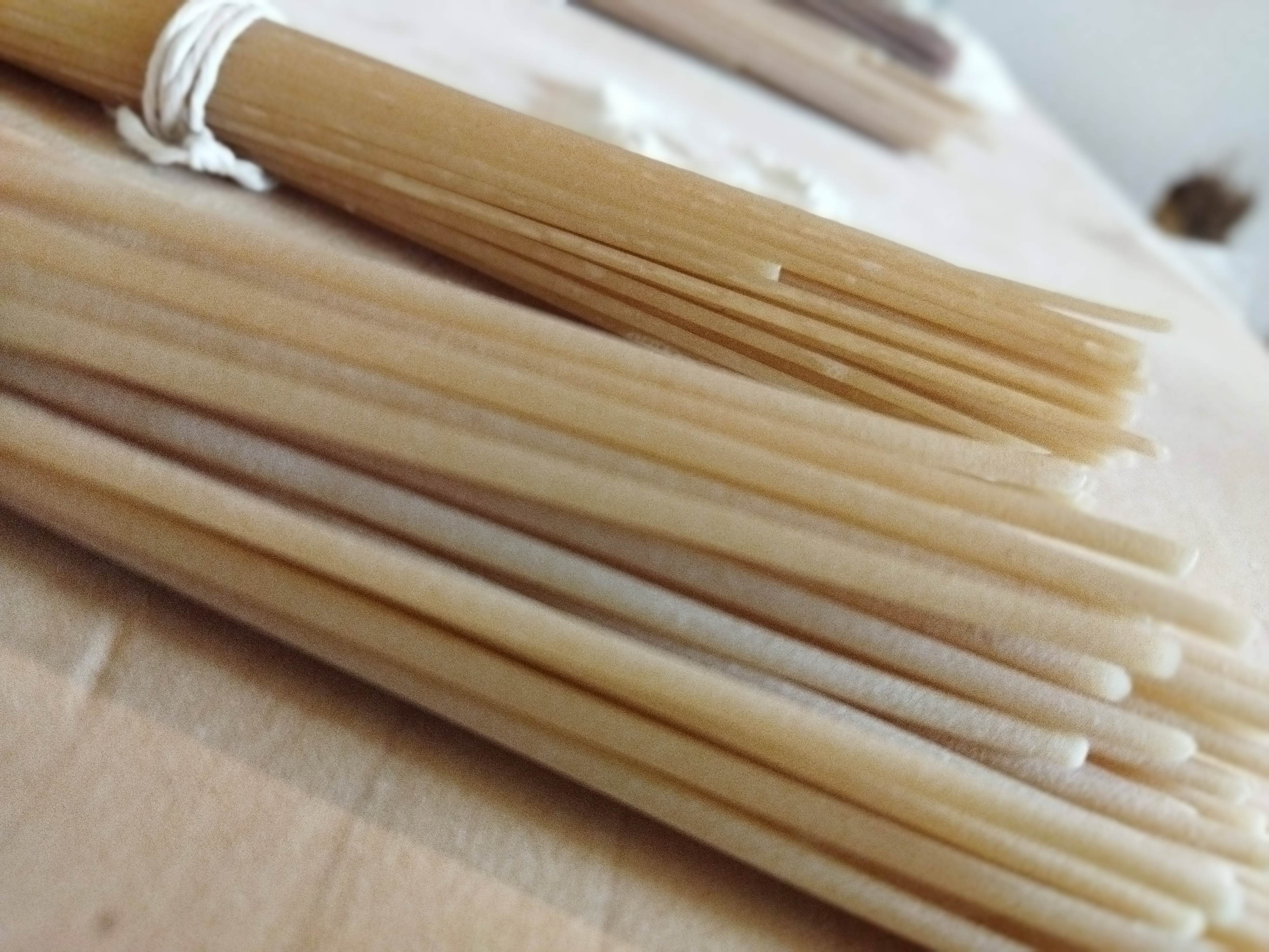 ファッブリ社では形状や小麦の種類などの掛け合わせで70種類ほどの自社製品がありますが、こだわりの小麦生産社から委託を受けてのパスタ製造も行っています。その相手はイタリア各地に20社以上! どこもこだわりの古代小麦で、その大事に育てた小麦をしっかりとパスタにしてくれる所を探してファッブリ社にたどりついたのでしょう。現在、某有名ワイナリーが小麦生産を行って自社ブランドパスタを作るプロジェクトがあり、現在ファッブリ社と遂行中だとか・・・これも楽しみです。