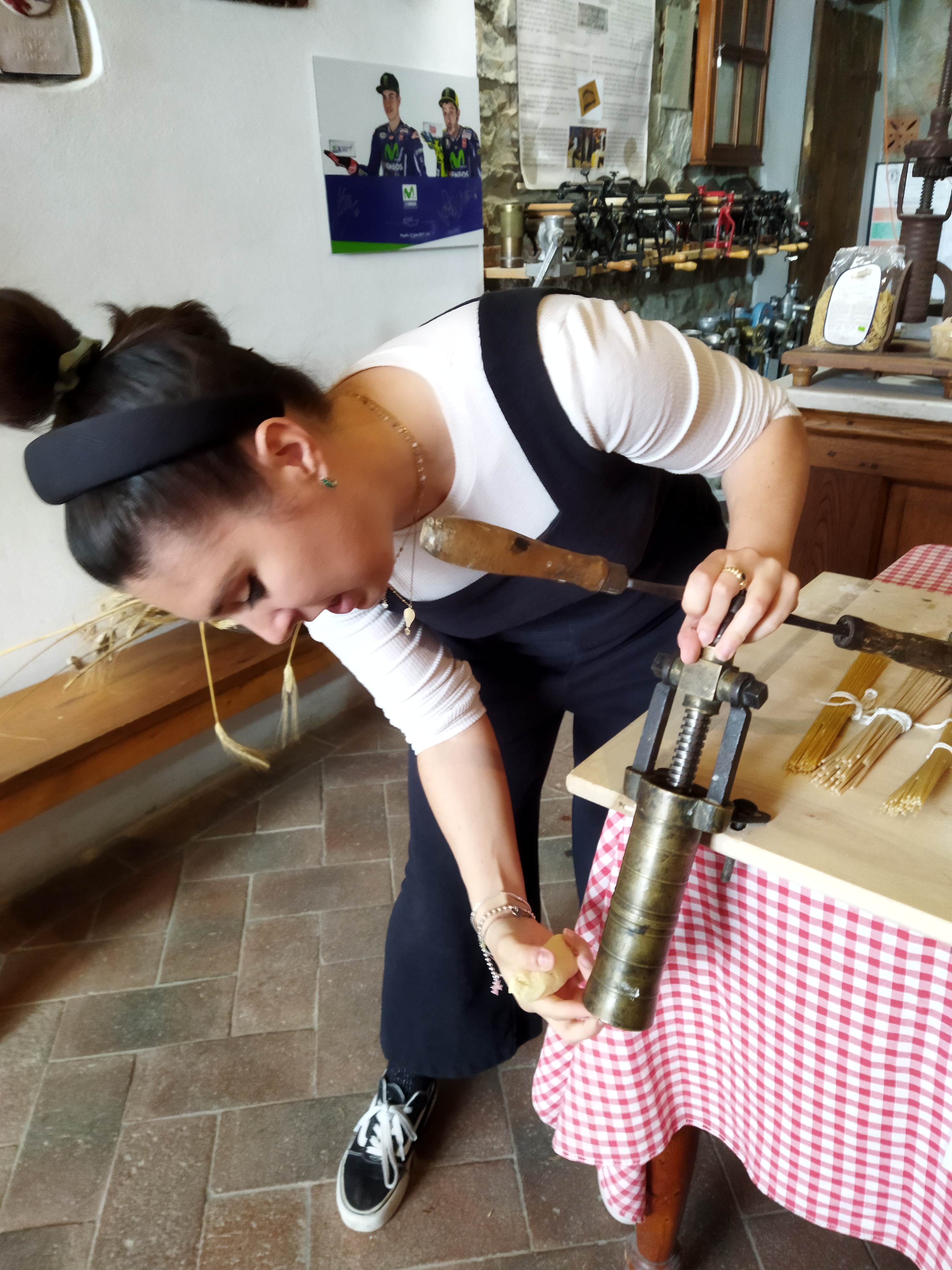 粉をひき、水と混ぜてコネコネ・・・実演を交えて説明してくれるマッダレーナさん。モチッとしたこの物体の正体は、ぜひ訪問の時に答え合わせしてみてください。
