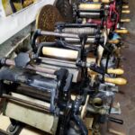 2階へ上がって一番最初のホールでは、乾燥が終わったパスタをベルトコンベアーに乗せ、下の袋詰め作業へと送ります。それからパスタ生地をこねた後にブロンズ型でパスタを成形し、上の写真のネット付きパネルに置いてゆく部屋へ(※見学ツアーの時間により、作業全てが見られないこともあります)。
