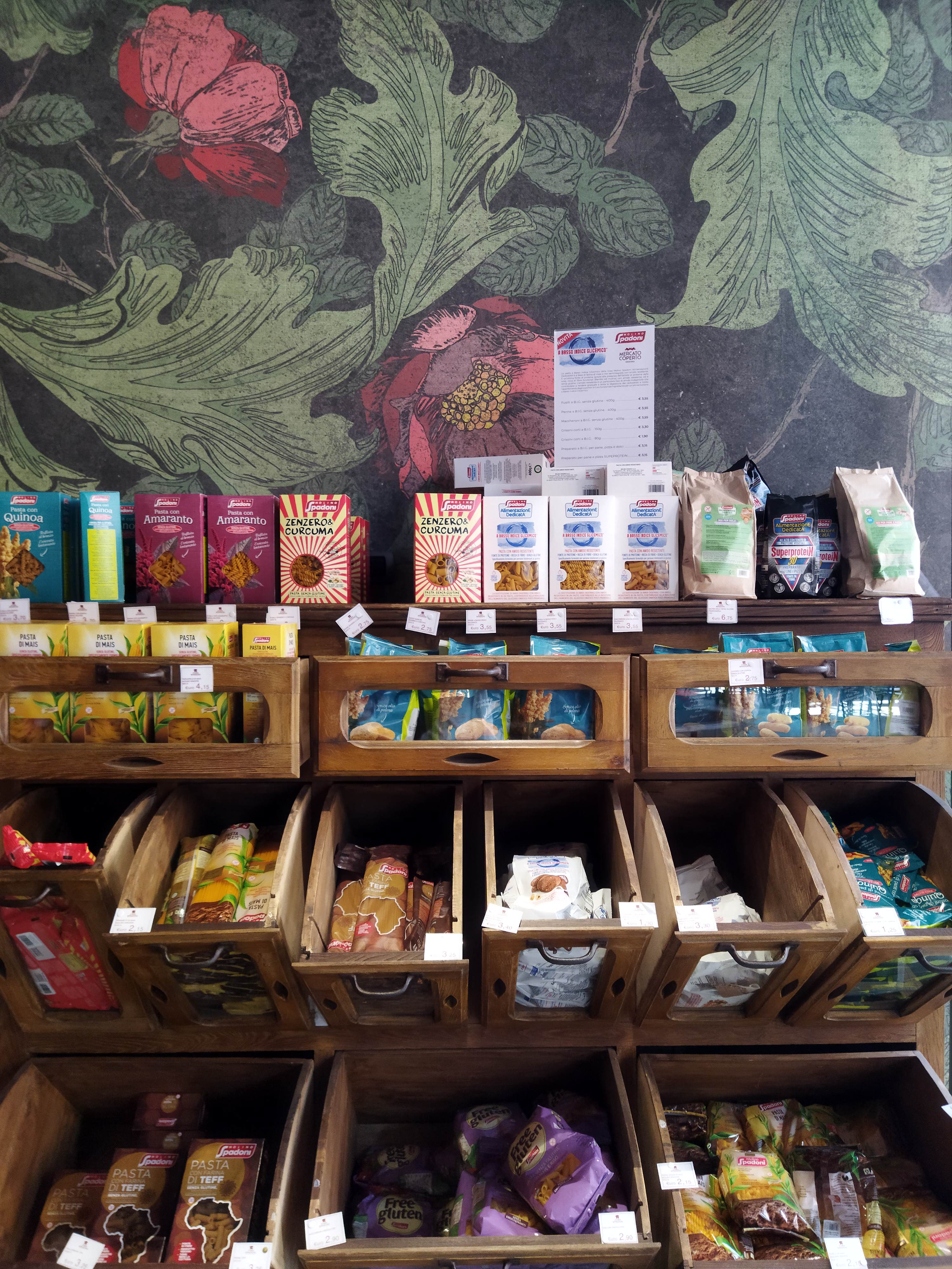 市場と言うと新鮮な野菜とか肉の店が並ぶのを想像されると思いますが、ここはロマーニャの食材を集めたお店、スーパーのCOOP、飲食店が入っています。レンガ造りの渋い建物の中はとても近代的でオシャレ。食事するもよし、お土産を買うもよし。