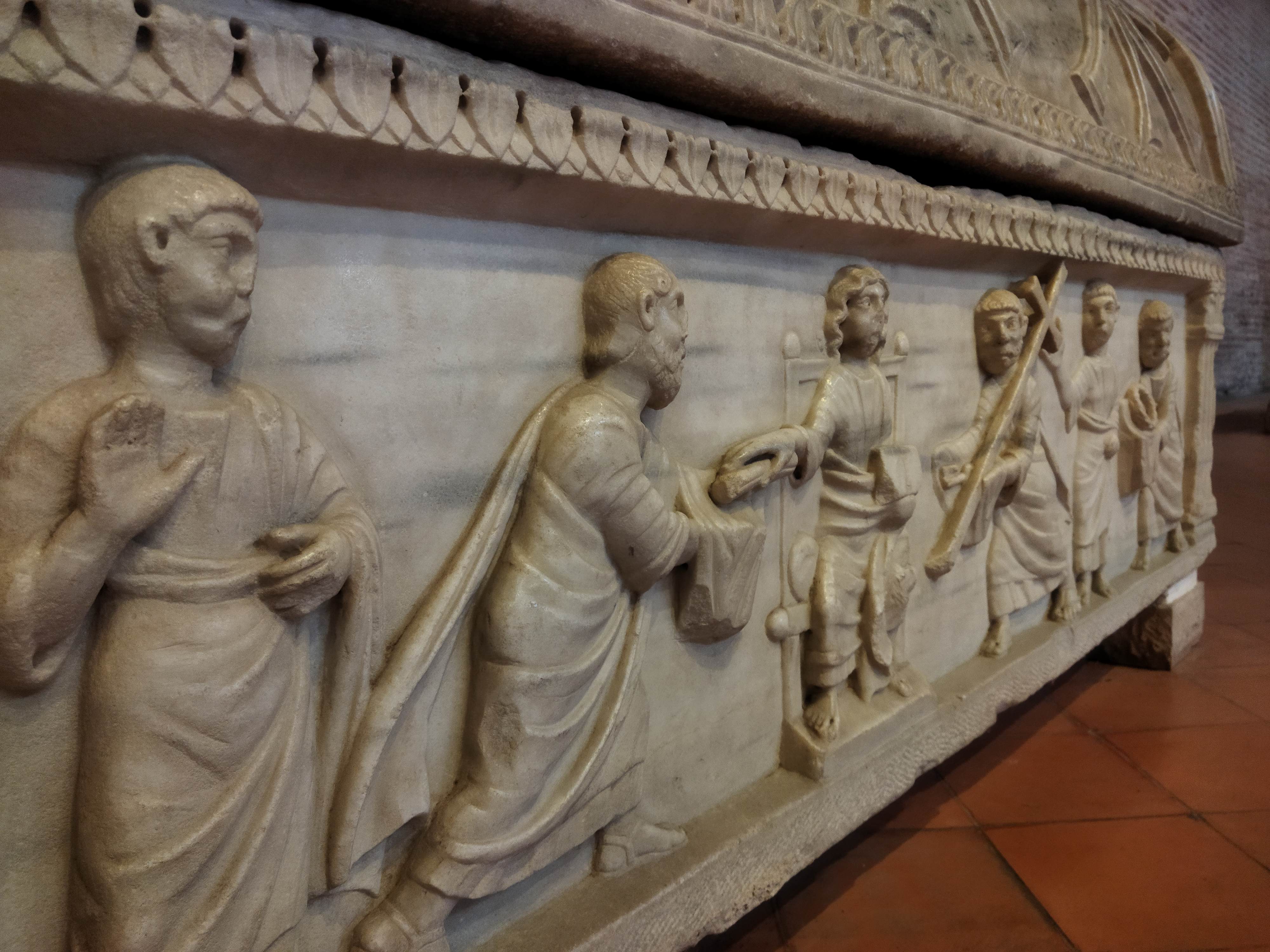 6世紀、テオドリックがアリウス派の洗礼堂として建造した八角形のレンガ造りの洗礼堂。天井のモザイク画はヨハネの洗礼を受けるキリスト像ですが、アリウス派はという三位一体を認めずキリストを人と解釈したためより人間らしく描かれており、前述のネオ二アーノとの違いも興味深いです。