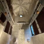 殉教者聖ヴィターレに捧げられた八角形の礼拝堂。東ゴート王国時代の起工で547年前後にほぼ完成するも、ビザンツ皇帝ユスティニアヌス1世やベネディクト会によって改修されました。天井がとても高い薄暗いなか、ひときわ光を放っているのが主祭壇のある空間。後陣はキリストを中心にした楽園、左右には皇帝ユスティニアヌと皇妃テオドラのモザイク、天井には前回投稿のサンタンドレア礼拝堂と同じく4人の天使が中心の円を支えています。上の金銀キラキラのモザイクだけでなく、床のモザイクも圧巻!
