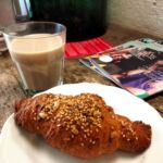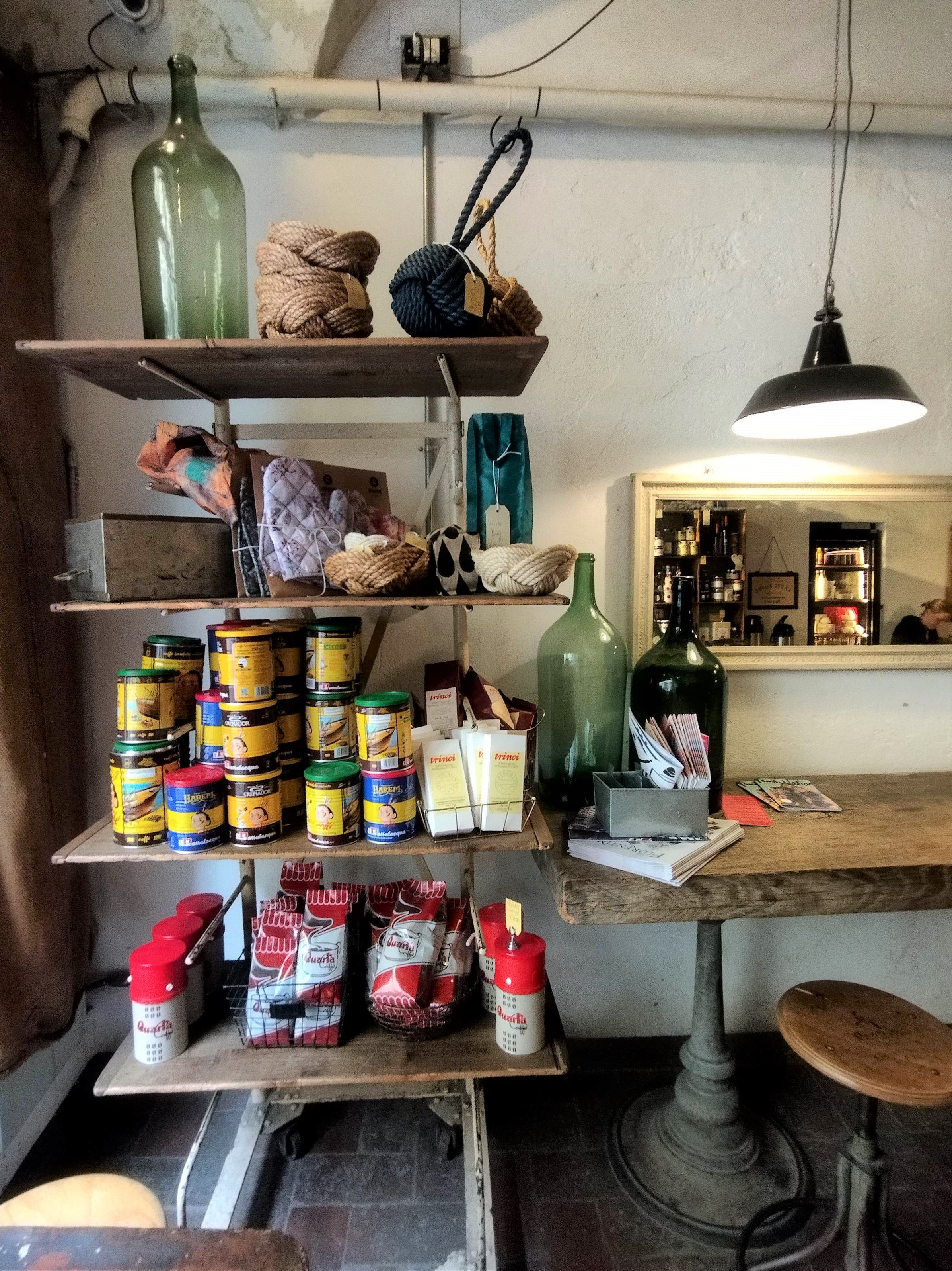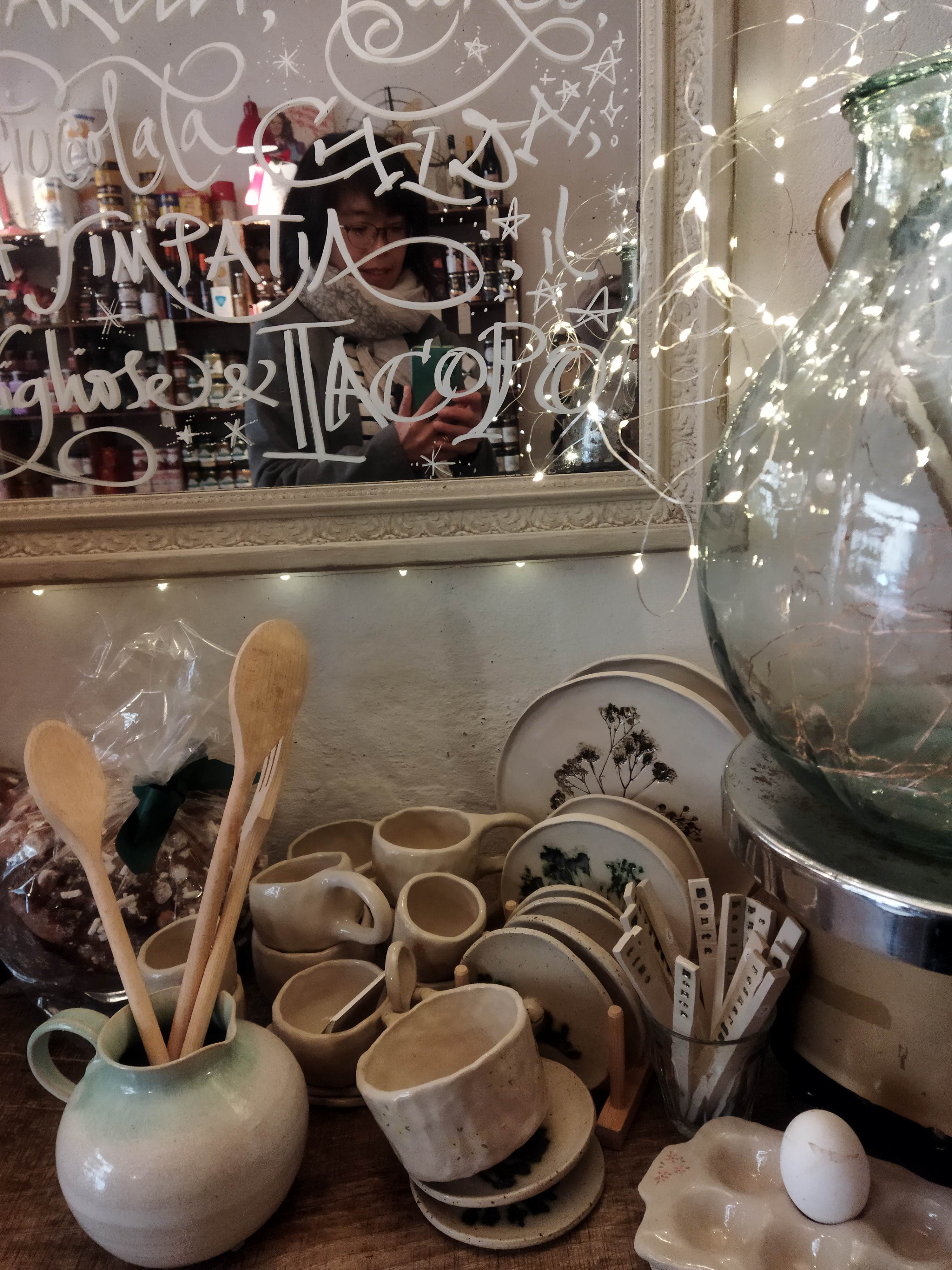 これも後で気づいたんですが、壁には朝食メニューも貼ってあり、パン・バター・ジャムや、グラノーラ入りヨーグルトなども。いろいろ組み合わせると、ブランチでも良さそう。とはいえ、12時~15時はランチタイムで、パニーノやスープなども注文することができます。席は雑貨などに埋もれてそれほど多くありませんが、私は壁沿いのカウンター席でまったりと過ごすことができました。