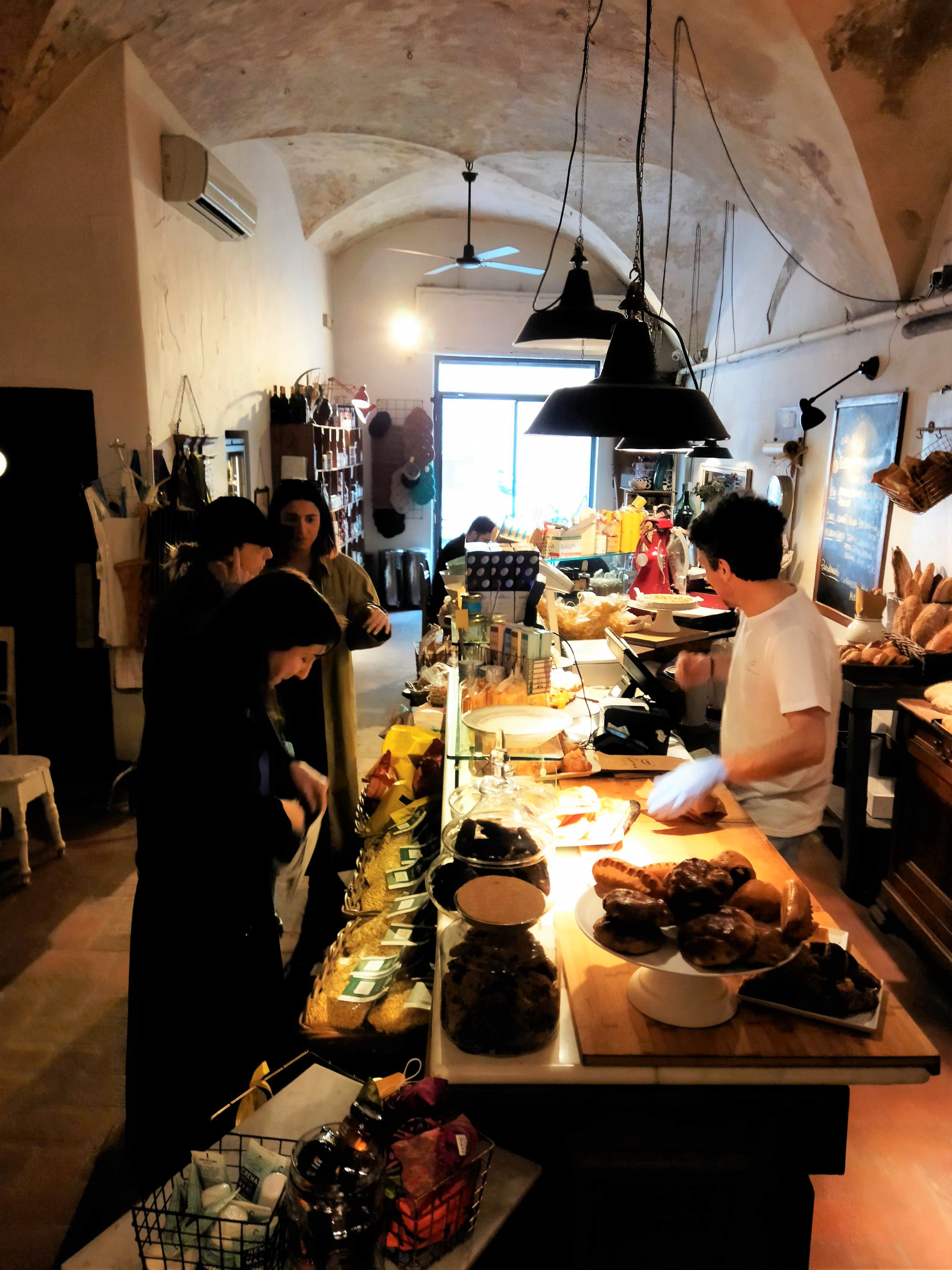 ブランカッチ礼拝堂の特別見学に行く時、せっかくだから久しぶりのあのバールで朝ごはん・・・と思いきや、まさかのクローズ! サント・スピリト広場からカルミネ広場に行く道中に何かあったかな、と歩いていき、偶然見つけたのがこのパン屋さん。パン屋さんかと思いきや、中にテーブルもあって飲み食いしてる人がいるし、何よりも雰囲気がとても好みだったので中に入ってみました。カウンターに行って店長さんらしきお兄さんに「朝ごはんできますか?」と尋ねると、「もちろん!」と明るい返事が返ってきたのも好印象(私は美味しさや雰囲気の良さよりも、スタッフの対応で評価が爆上がりになったりその逆になったりします・笑)。