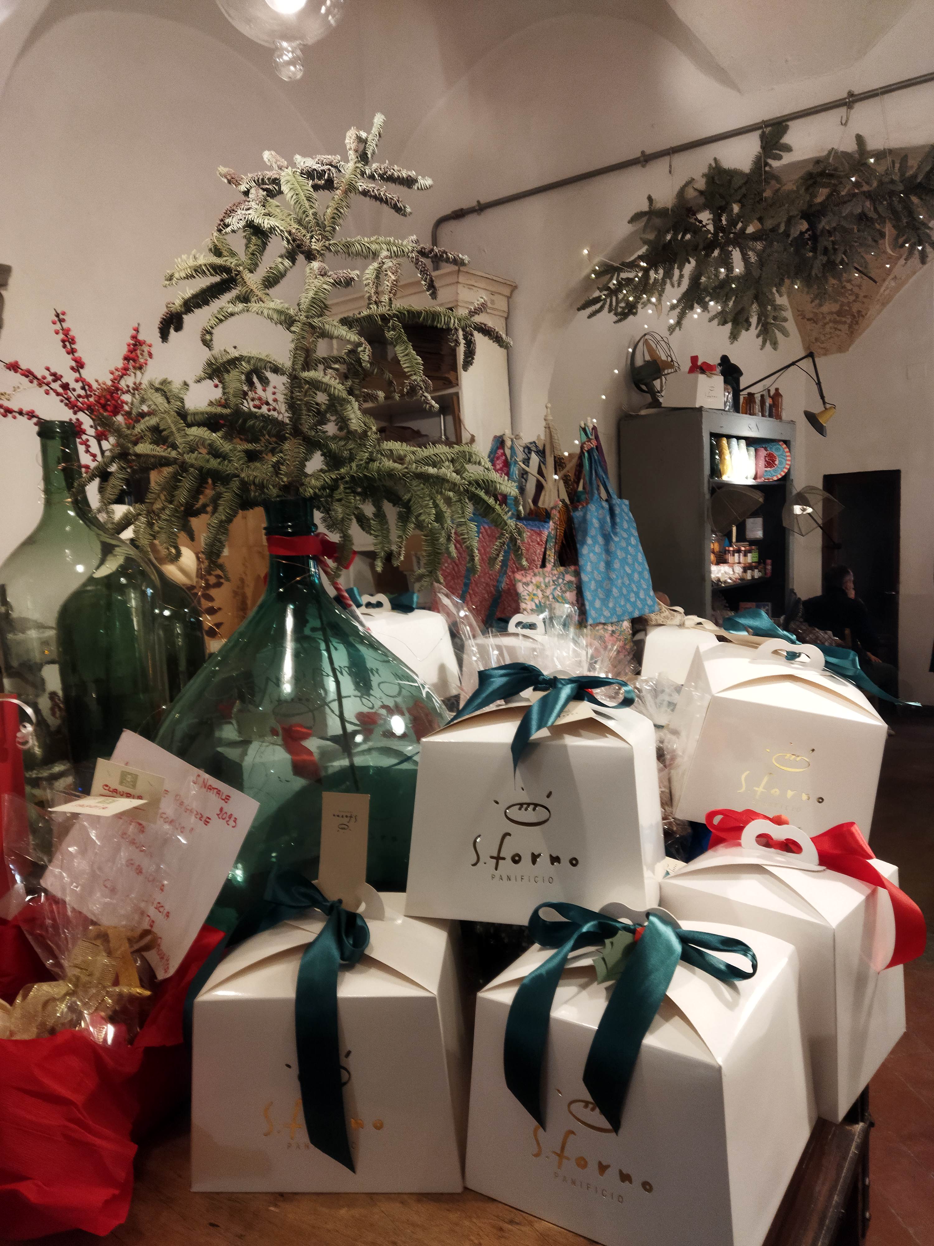 お店にはエコバックや籠、ソープ、そしてパッケージも可愛らしい食材もたくさん売っているので、お土産にも良さそう。あるいはフィレンツェでアパートに滞在している人はパンはもちろん、パスタやここの食材で自炊も良いですね~そしてタルトなどのスイーツもテイクアウトして・・・まさに近所に住んでいるかのように滞在が楽しめますね。クリスマス前は、自家製パネットーネも販売していました。