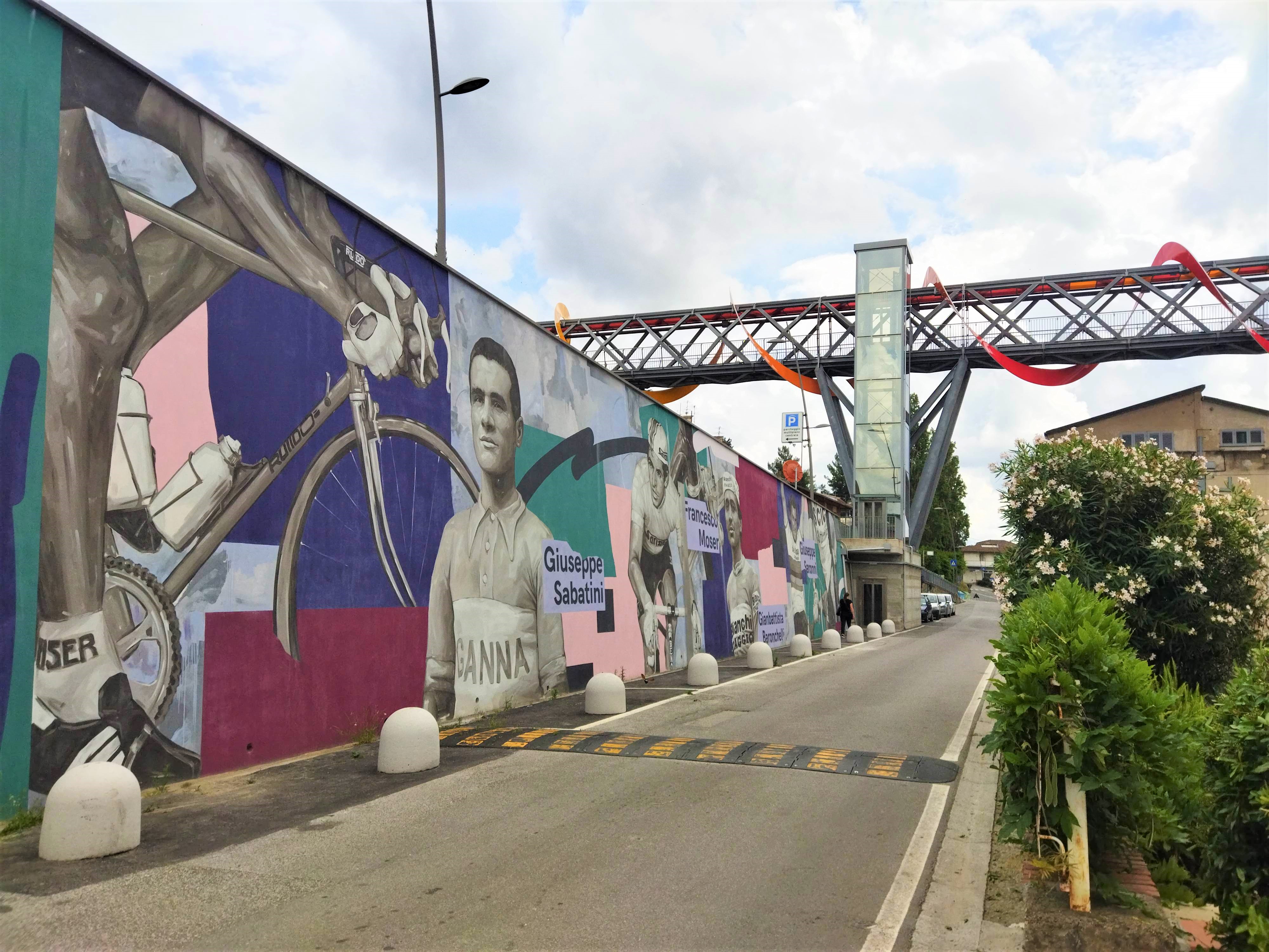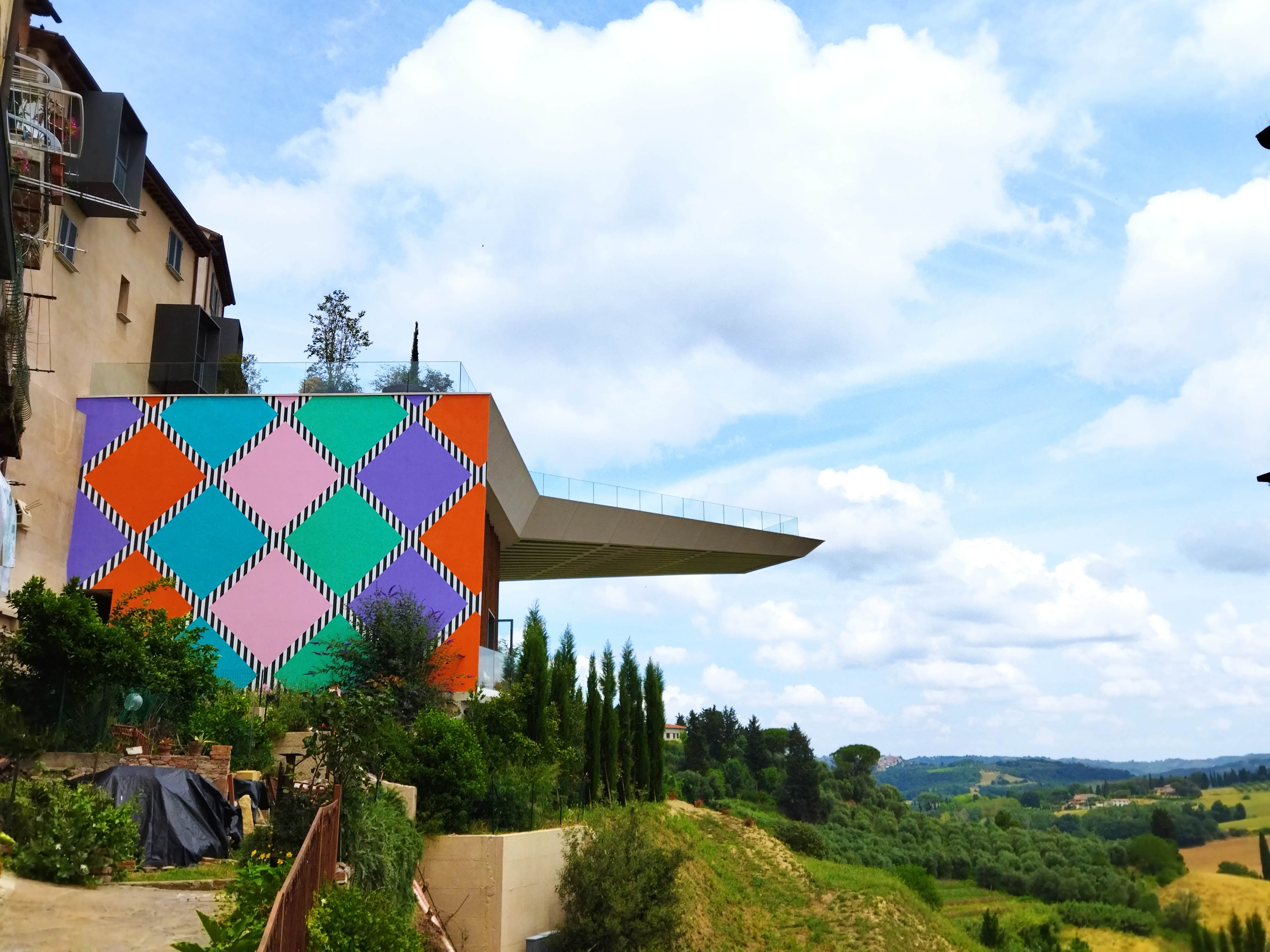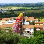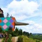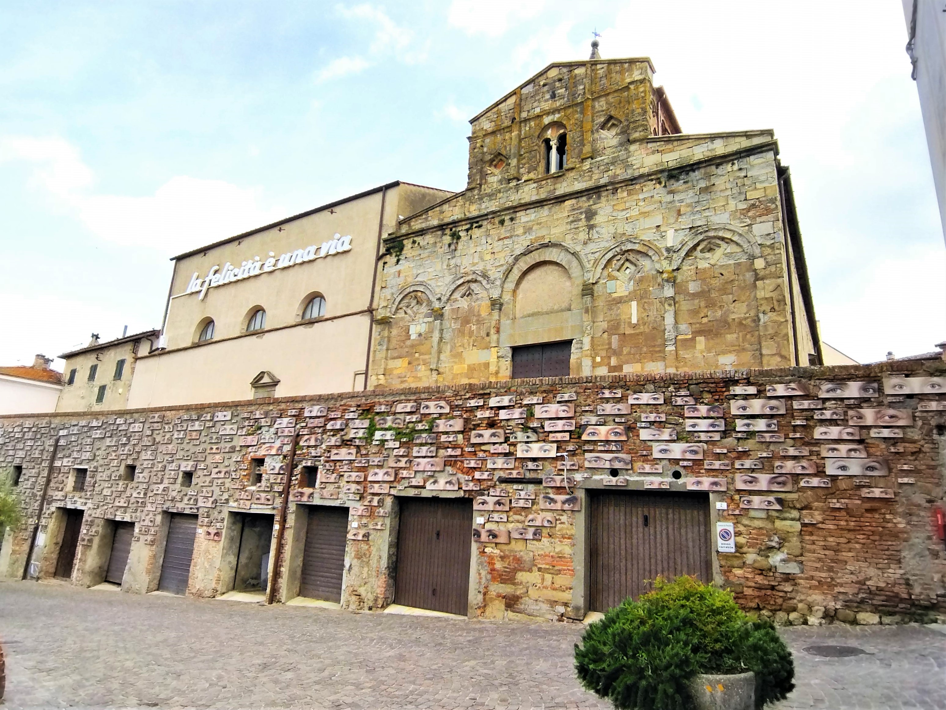 私の中では行った村が少ないピサ県ですが、前々からとても行ってみたかった村がこのペッチョリです。実は10年以上前に息子たちのためにペッチョリ近郊の恐竜公園に行き、その後にちょっとだけペッチョリの村も散策したのですが、あまりはっきりした記憶はなく・・・しかしこの数年にSNSで見る斬新な村の様子に驚き、ちょっと調べてみると面白いことが分かりました。それは、TOP写真のアーチの下にある頭文字「MACCA=Museo d’Arte Contemporanea a Cielo Aperto」、つまり、屋外の現代アートミュージアム。始まりはなんと30年近く前、村のプロモーションツールとして採用されたのは「現代アート」。今ある資源を活かすのではなく、新しいものを取り入れるのは、意外とクローズなイタリア文化の中ではそうそう簡単ではなかったと思います。特にこんな小さな村、中世の面影を残す村では、景観問題であるとか、市民や市議会でも反発があったのでは?と想像に難くありません。実際、初期にインスタレーションされたのは、村に自然に溶け込むようなレンガ色の作品がほとんどでした。