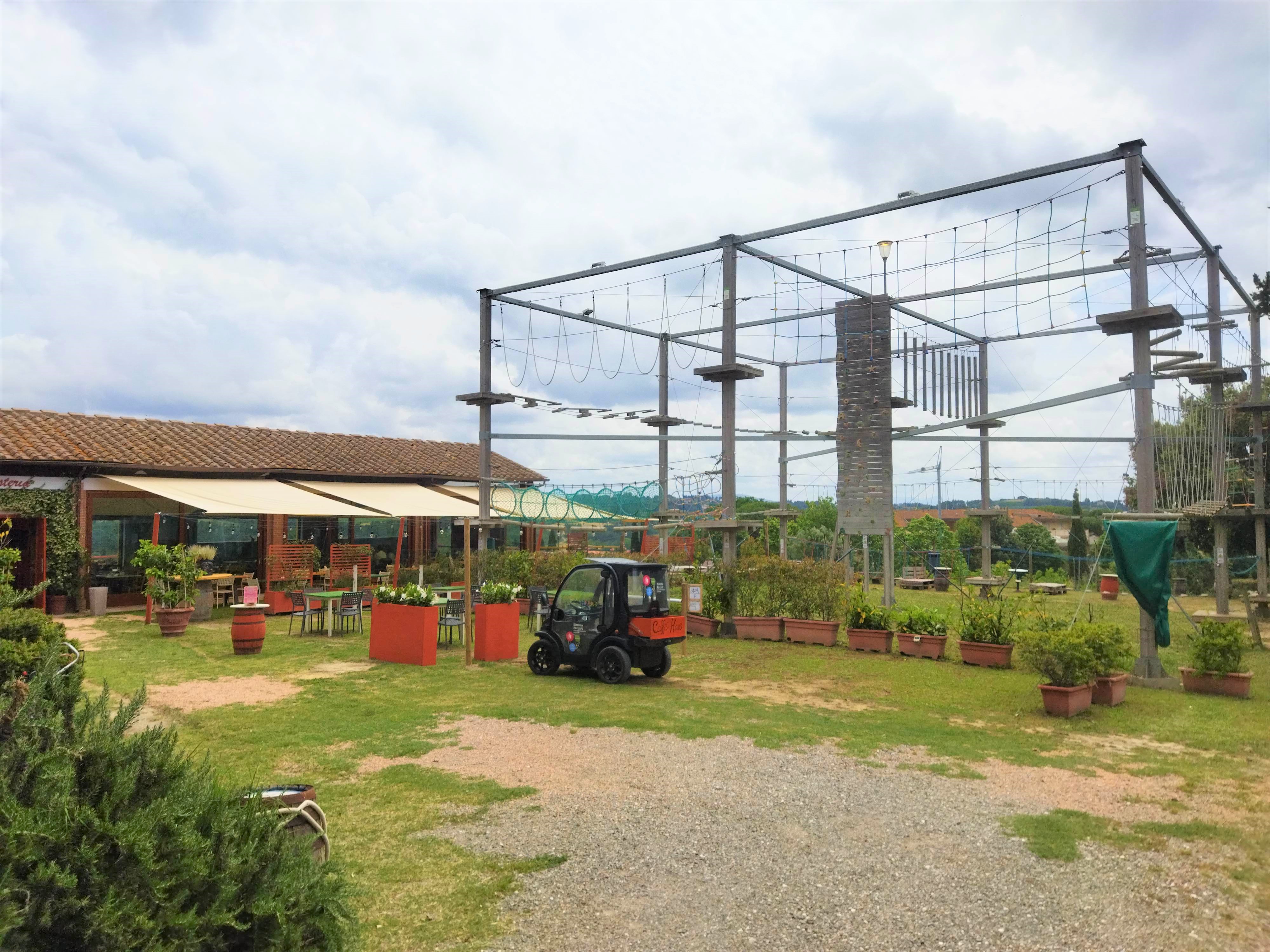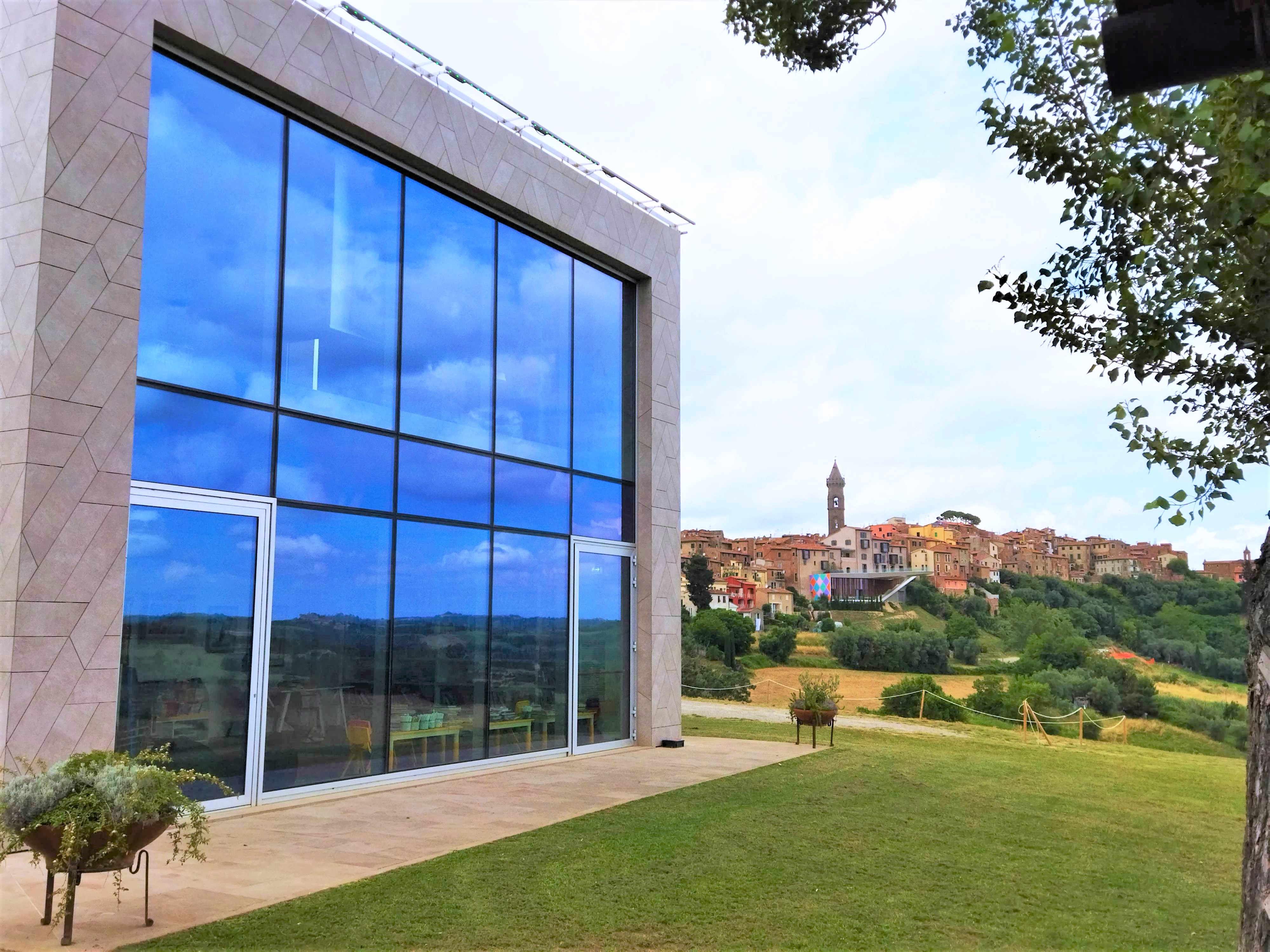 フィレンツェより直通電車で45分、ピサ中央駅より直通電車で20分のPontedera-Cascina.T 駅下車。駅前から前方左にあるバスターミナルより、バス460番で約40分。