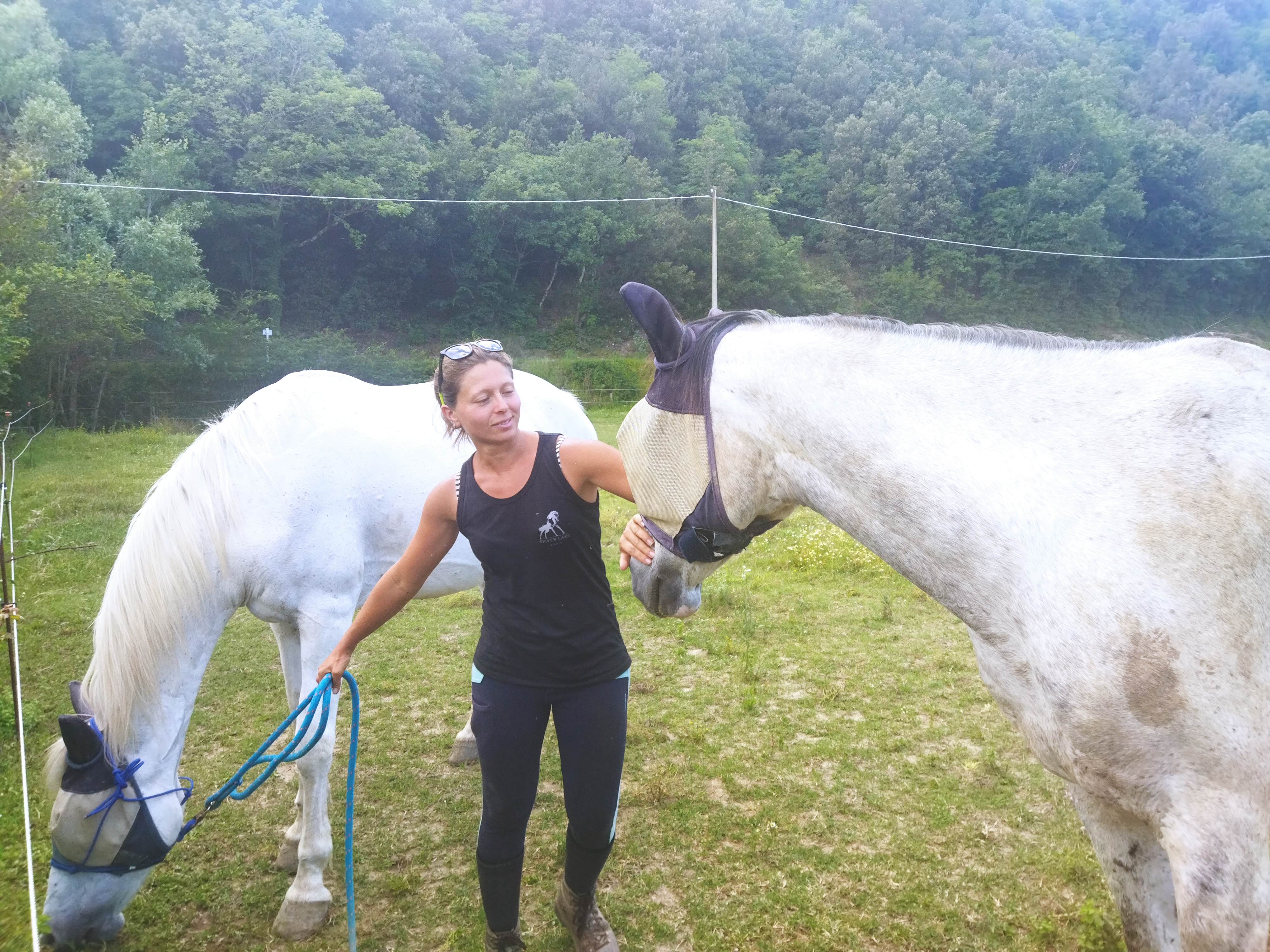 インストラクターはカテリーナ。ずっと近辺のアグリツーリズモや乗馬センターで勤務していましたが、2021年に念願の自身の乗馬センターをオープン。彼女所有の10頭+プライベートオーナーから預かっている15頭の合わせて25頭と、乗馬センターの横で暮らしています。サイトの更新やメールチェック以外は、馬の世話からレッスン、最寄り駅との送迎まで、全て1人でこなすバイタリティたっぷりのカテリーナ。それはやはり馬のことを、乗馬の楽しさをたくさんの人に知って欲しい!との思いから・・・おかげで今は会員の人はもちろん、フィレンツェに留学中の外国人まで幅広い方がここを訪れています。