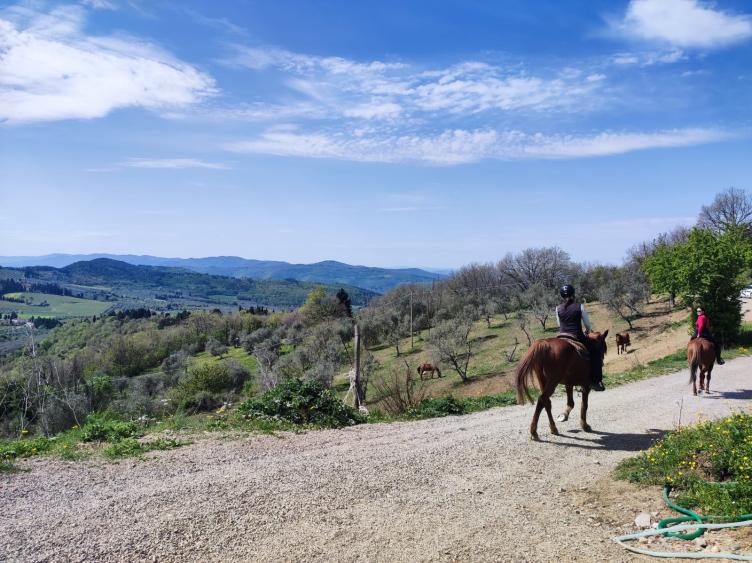 トスカーナで乗馬なんて、車でしか行けないところにしかないのでは・・・と思われがちですが、フィレンツェやおらが村に滞在中(休暇の家またはパーマカルチャー農園アグリツーリズモ)に、車を使わずに行ける乗馬センターがあります。すでに乗馬経験のある方はフィレンツェ北部の豊かな自然へトレッキングへ、乗馬経験のない方もパドックでのレッスンはもちろん、2時間までの簡単なトレッキングを体験できます。特にフィレンツェ滞在中の方は観光客でいっぱいフィレンツェからリフレッシュに、特に美術鑑賞だけでは物足りない、飽きてしまうお子様連れの方にはぴったり! フィレンツェからは電車で40分、おらが村からはたった電車で10分の距離の駅からは車で約5分。乗馬センターや側にある湖はからは、こんなに近いのに鉄道や道路は全く見えず、その美しさに癒されてしまうほどの豊かな自然に囲まれています。