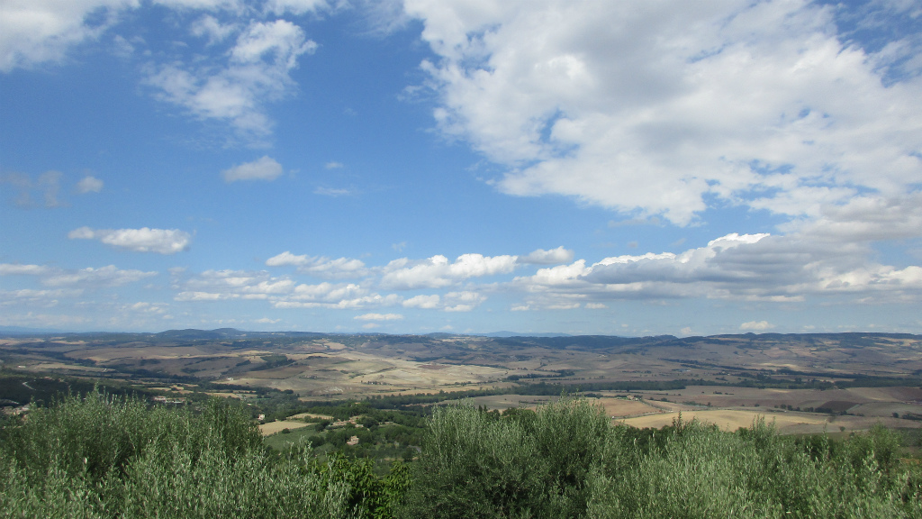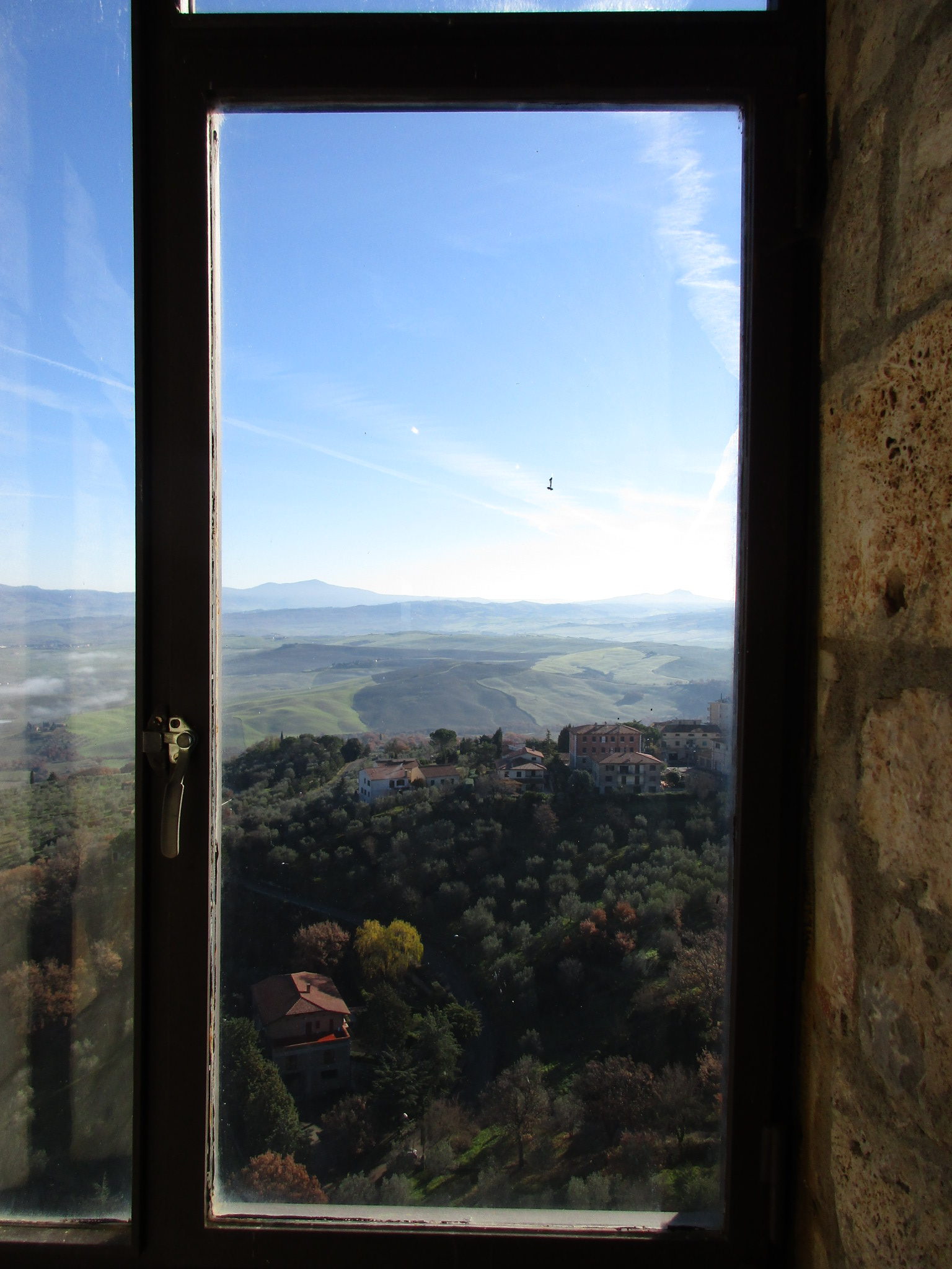 要塞の下にあるのがロッカの村 、その右前にあるのが バーニョ・ヴィニョーニ 、その丘の向こう側にあるのが サン・クイーリコ・ドルチャ 、広大なオルチャ渓谷のかなりの部分が見渡せます。