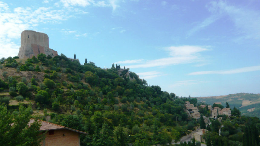 オルチャ渓谷内には、私が知ってるもので要塞が4つあります。その中でも、オルチャ渓谷エリアの真ん中にあるのがここ、 ロッカ・ドルチャのテンテンナーノ要塞。オルチャ渓谷の町では、「○○・ドルチャ」=オルチャの○○、という名前が多いですが、 ロッカ=要塞 、つまりオルチャ渓谷の要塞と町の名前になるほど、雄大なオルチャ渓谷のパノラマの中でなかなか目立つ存在です