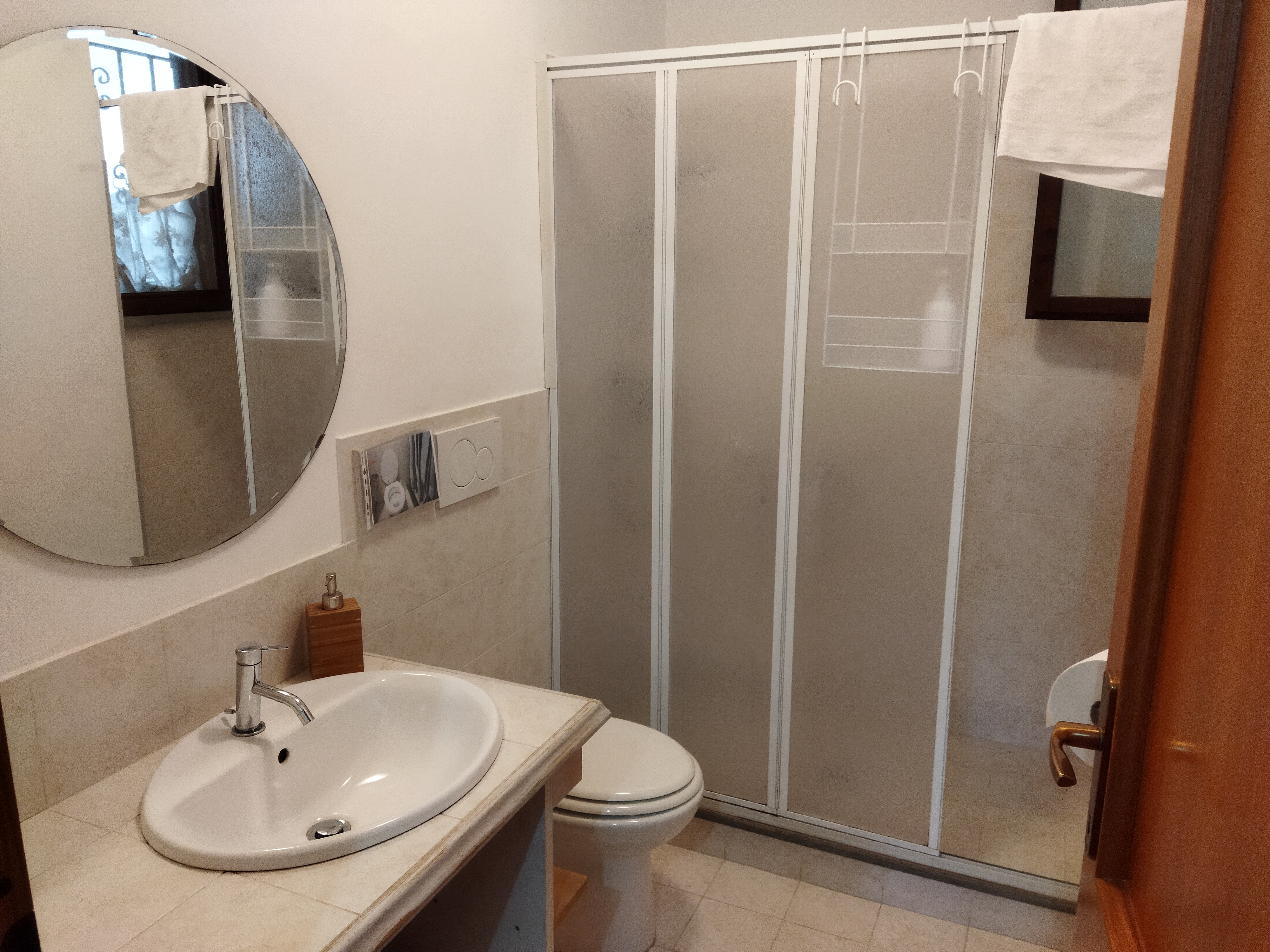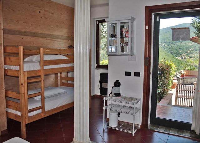 場所は料理教室をやってくれているダニエーラ宅から森の散策路を15分くらい下った所にある建物で、料理教室にいらっしゃる方の宿泊にピッタリ。彼らの友人でもあるロザルバ・ヴァレリオ夫妻が、自宅1階の1室をゲストルームにしています。自宅の一室、と言ってもオーナー家族は建物裏の別の出入り口を使用するので、ゲストは独立した玄関を使っていただけます。