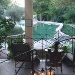 とはいえ、温泉プールエリアに入ったらテンション爆あがりで、奥のテラス下にある更衣室ですぐに着替え、さっそく温泉ヘ。イタリアの温泉はぬるいのが普通ですが、ここの熱い方のプールは熱い湯が好きな日本人の私も満足の良い湯加減。49度の源泉がそのまま?入ってきていて小さめのプールなので、湯温がキープされてるのでしょうね。とはいえ日本の露天風呂よりはぬるめで38〜35度なのに、義妹には熱すぎるらしく、数分で32〜28度のぬるい方のプールへ。