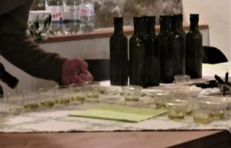 健脚派のお2人は、ここから丘の上の村・モンテフィオラッレまでプチトレッキングを選ばれました(グレーヴェ⇆モンテフィオラッレ間のタクシーはまず受けてもらえないか、受けてもらってもかなりの高額です)。曇りだったことが幸いし、気持ち良い風を浴びながら、そしてオリーブ畑を両脇に見ながら、おしゃべりをしながらだと30分はあっという間でした。