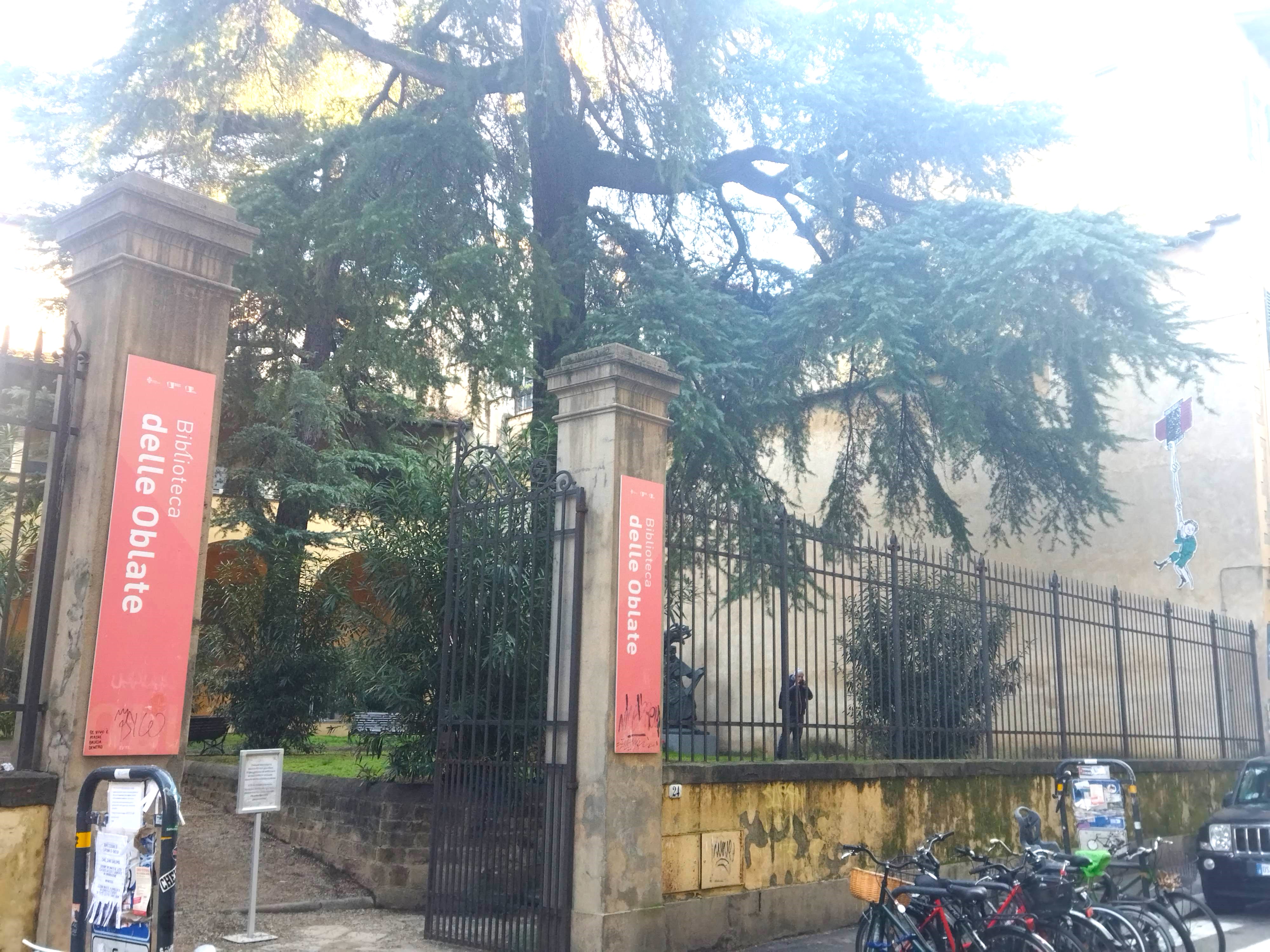 歴史をさかのぼること、なんと750年! この建物は1285年~88年、ダンテのミューズ・ベアトリーチェの父としても知られる銀行家のフォルコ・ポルティナーリによって建設された女性専用の病院です。対を成すように裏手に建設された男性専用病院、サンタ・マリア・ヌォーヴァは、現在も旧市街唯一の病院として機能しています。さて、この女性専用病院ではオブラーテという名のもとで多くの女性が働いており、今もその名前が残っているのですが、オブラーテとは? ラテン語で「他人を手助けするために人生を捧げた女性」を意味するのだそう! 当初は信仰を持たない女性の集団でしたが、近年のカトリック教会の再編により信心会となり、1936年までここを本部としてフィレンツェの各病院や世界でのミッションに修道女たちが活躍したそうです。その後にサンタ・マリア・ヌォーヴァの改築で性別を問わない総合病院となったことを機に、空となったオブラーテの建物を市が買い取り、今までヴェッキオ宮殿内にあった図書館を移設して今に至ります。