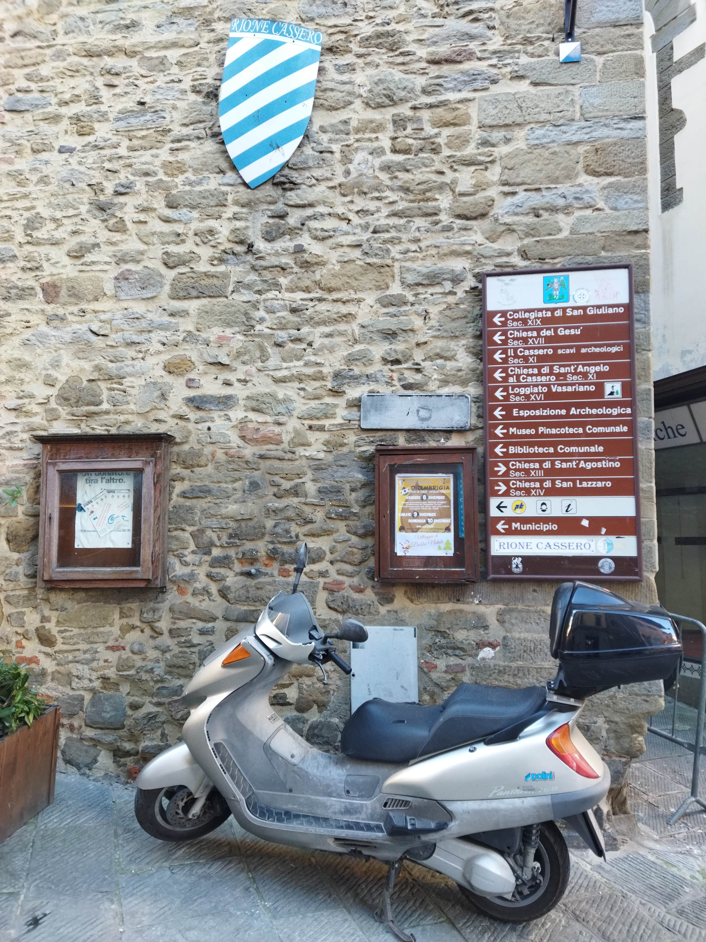 カスティリオン・フィオレンティーノは、オスカー受賞映画「ライフ・イズ・ビューティフル」が撮影されたアレッツォからたった1駅、そして同映画の冒頭シーン、ロベルト・ベニーニ扮するグイードが運転する車が制御不能になったシーンを撮影した村でもあります。実は通訳の仕事で1泊し、翌朝の仕事前に30分だけ散歩したことがあるのですが、やっと再訪することができました。