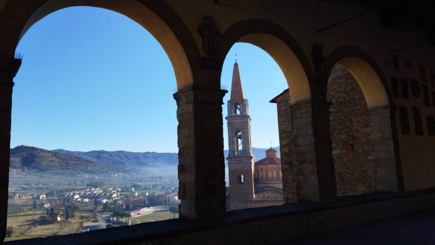 名前の「Castiglion Fiorentino」は、フィレンツェの城壁に囲まれた村という意味。アレッツォ県にあるのにどうしてフィレンツェ?と思われるかもしれませんが、ここは ルチニャーノ や モンテ・サン・サヴィーノ などの他のキアーナ渓谷の村々と同様に、中世の頃からフィレンツェ、アレッツォ、シエナなどの町が交わる重要他であり、最終的に1384年からはフィレンツェ共和国の統治下に置かれたから。1014年の記録では「Castiglion Aretino(アレッツォの城壁に囲まれた村)」、そしてフィレンツェの前にペルージャが統治していた時代は「Castiglion Perugino(ペルージャの城壁に囲まれた村)」と呼ばれていました。イタリア統一、そして今のトスカーナ州の領土区画が決まった時に「Castiglion Aretino」に戻らなかったのかは、なぜだか分かりませんが・・・