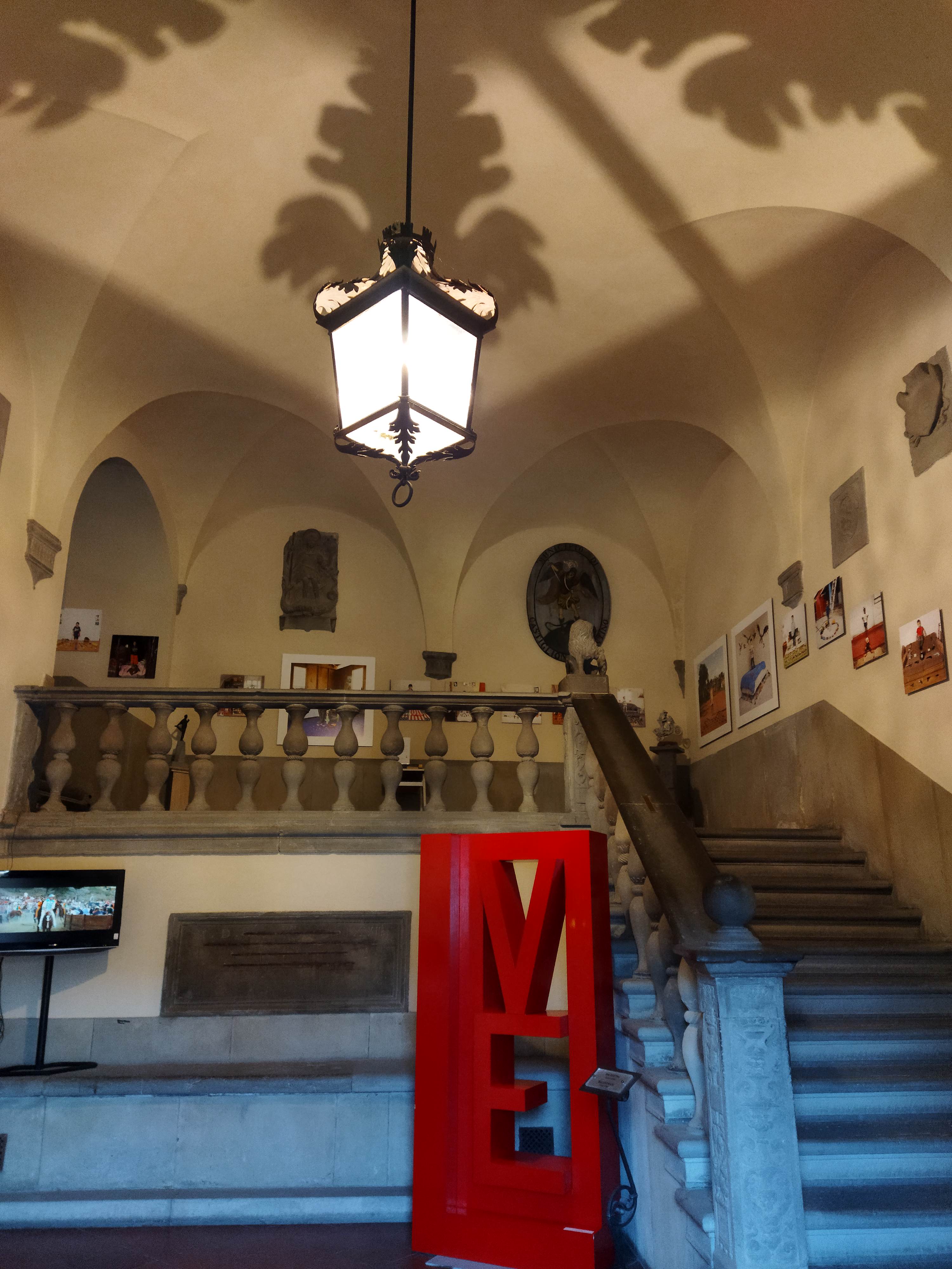 フィレンツェ門からまっすぐ行くと、ほどなく到着するのがムニチーピオ広場。その名前の通り現在の市役所がある広場なのですが、その建物はペルージャ統治時代の14世紀にまで遡ります。そして市役所の向かいにあるのが、ヴァザーリのロッジア。