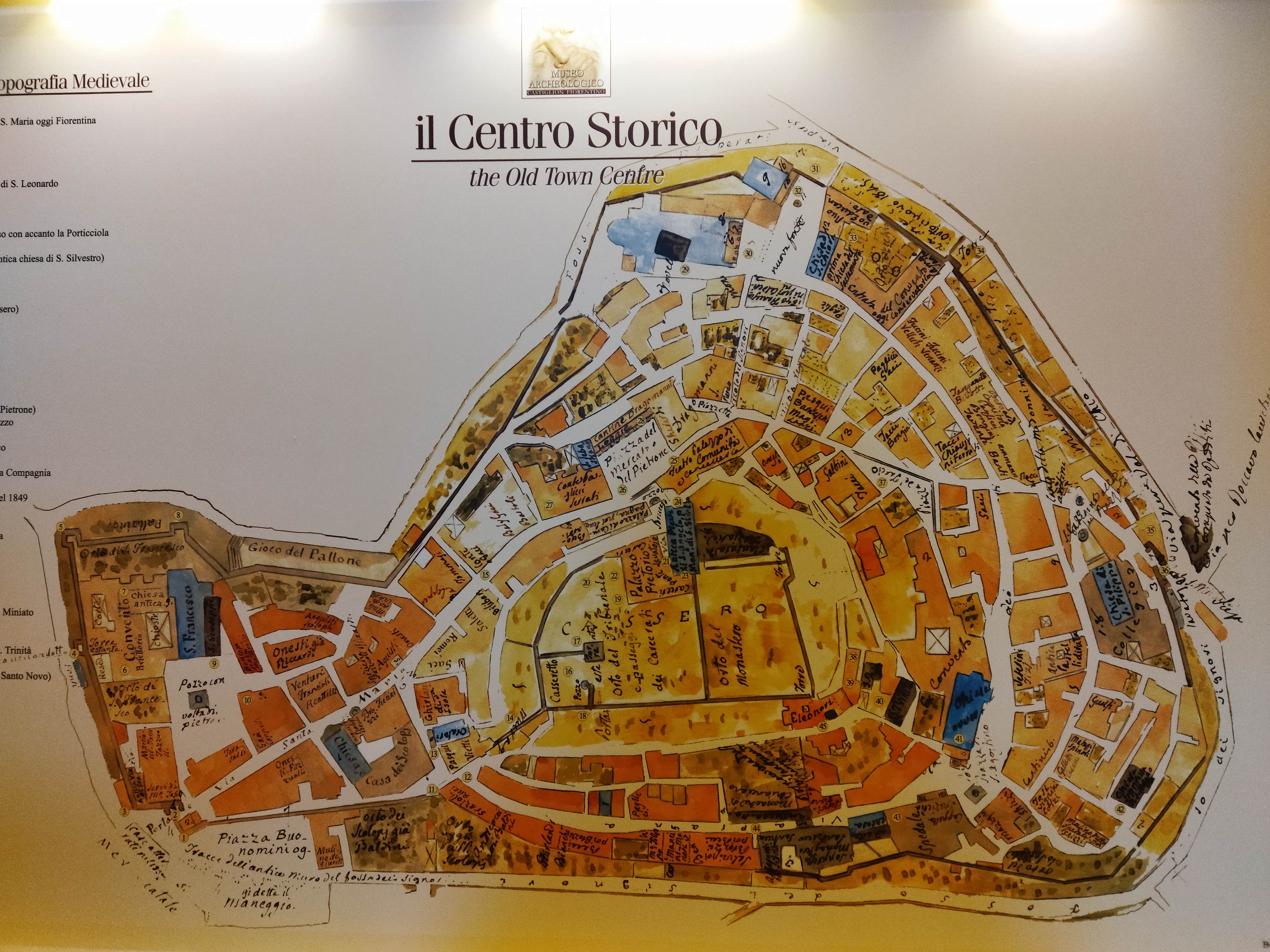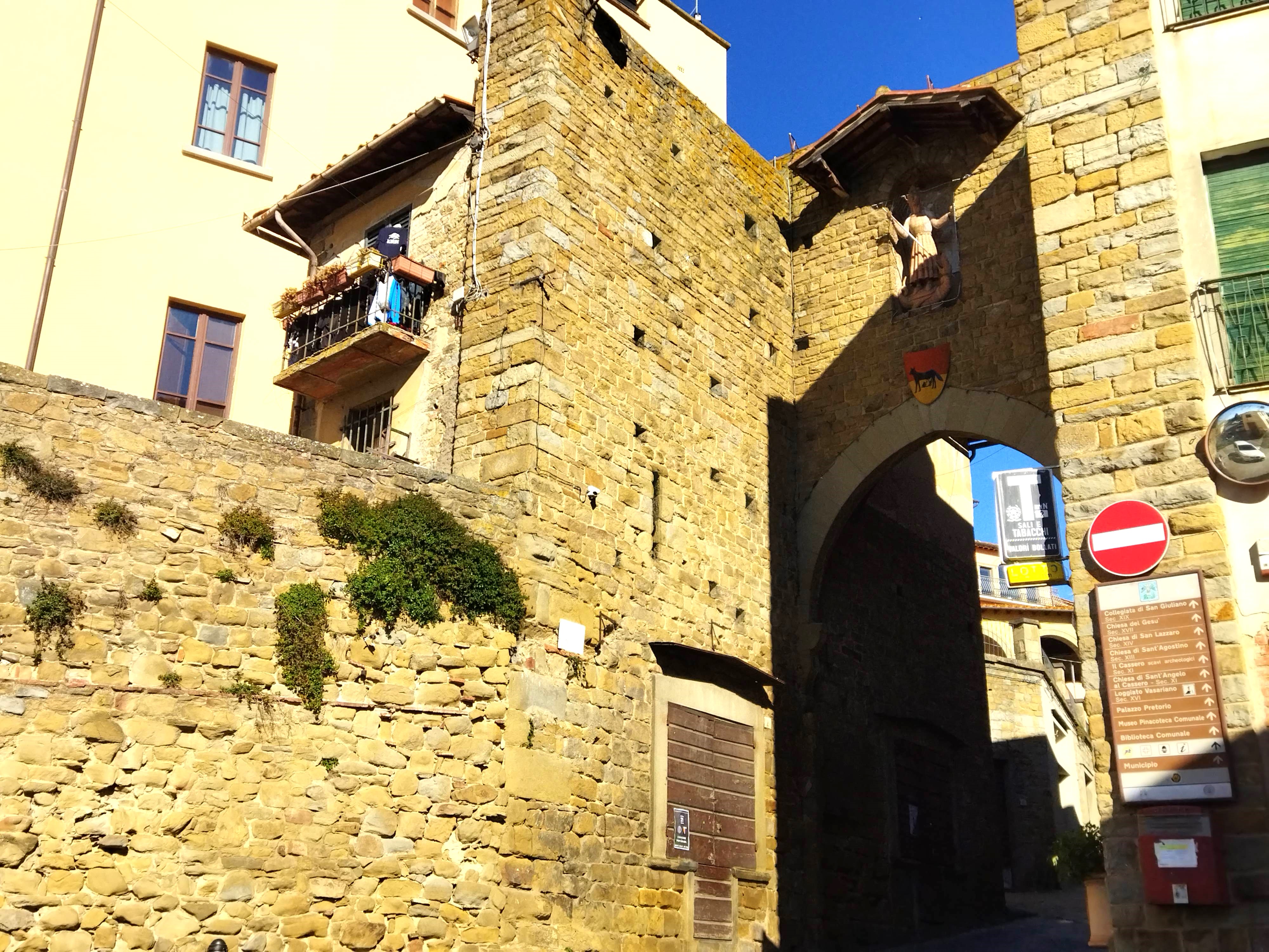 駅に降り立ってすぐに旧市街が見えるのですが、そこまではゆるやかな坂道をえっちらおっちら15分ほど歩きます。標高342mにある旧市街は南北に長く、南北それぞれにある2つの門から入ることができます。グーグルマップでは両方の行き方が出ると思いますが、少し楽なのは北から、このフィレンツェ門から入るほうをおススメします。