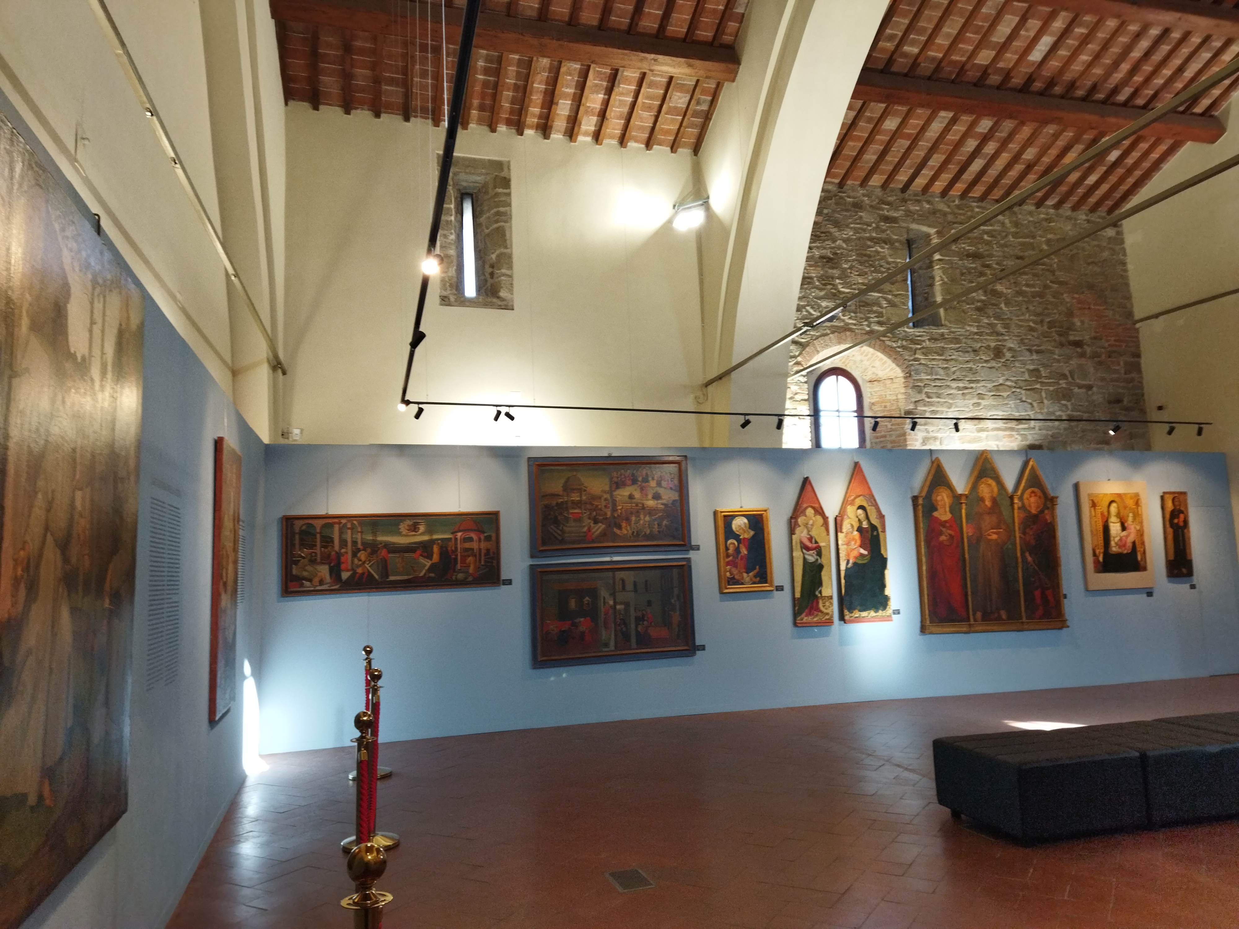 その隣にあるサンタンジェロ教会は絵画館になっており、1階の元聖具室には中世の金銀細工の技を屈指した十字架や聖女オルソラの胸像、2階の絵画館ではタッデオ・ガッティやバルトロメオ・デッラ・ガッタなど、12~16世紀の板絵を鑑賞することができます。
