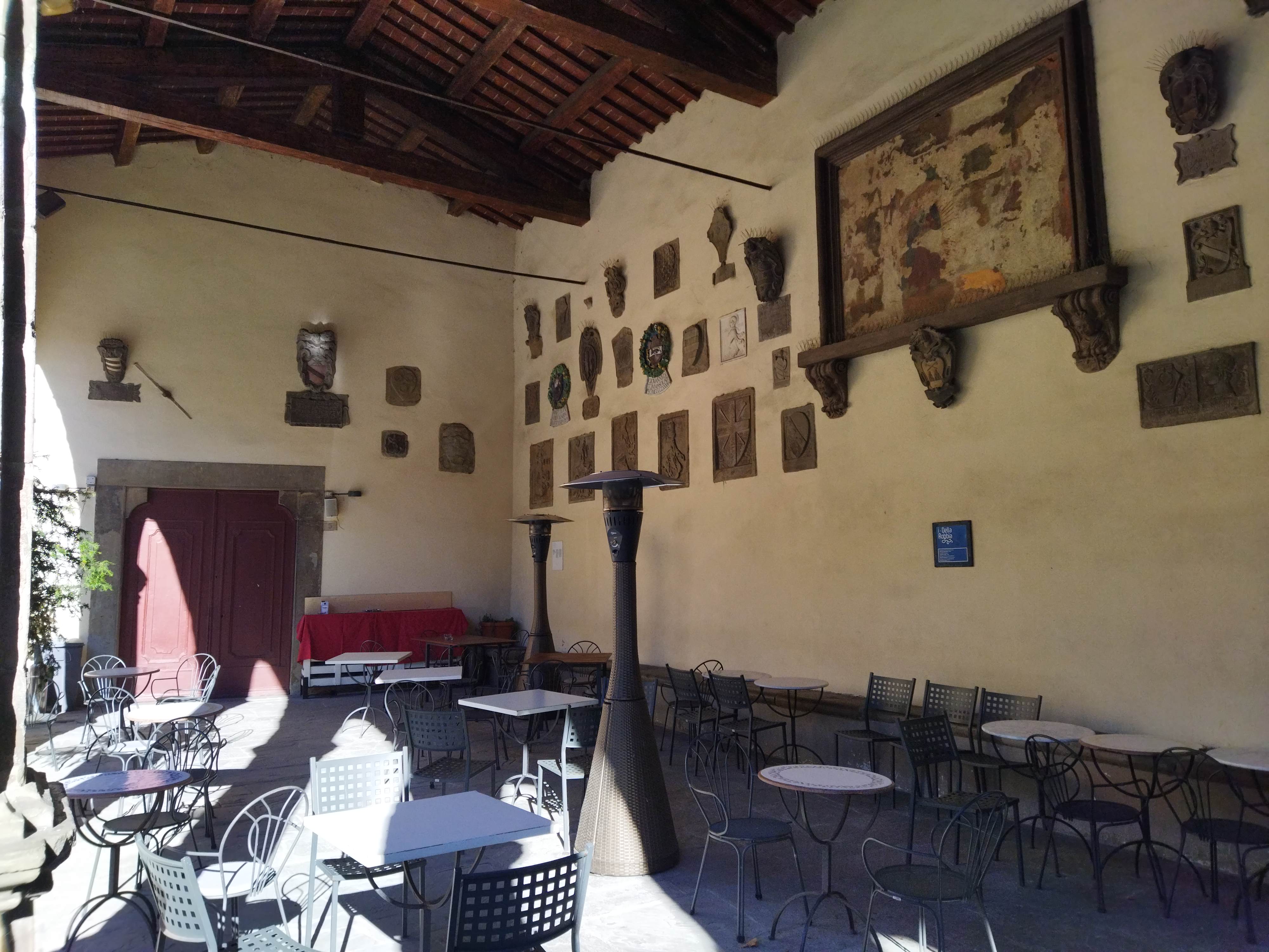 ヴァザーリと言えば、フィレンツェのヴェッキオ宮殿からピッティ宮殿をつなぐ「ヴァザーリの回廊」や、ルネサンス期の芸術家たちを面白く紹介した「芸術家列伝」で有名ですが、彼も16世紀半ばに活躍したアレッツォ出身の芸術家です。このロッジアは彼の名前で呼ばれているものの、元々は中世から存在していたもの。1513年に新しく建て替えられたものの状態は思わしくなく、トスカーナ大公のコジモ1世とともによくここを訪れていたヴァザーリが1560年からの改修を受け持ったことから、この名前がついたよう。この頃にロッジアの正面に漬けられたメディチ家の紋章の他、ロッジア下にも様々な有力家系の家紋が飾られており、いロッビア工房の彩色テラコッタ製のものもいくつか。ロッジアの安定性のために一時は閉鎖された3つの開口部からは、なだらかに広がる美しい自然や町並みを見ることができます。