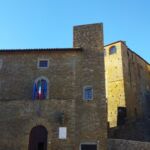 市役所の右の道を上ると、村の中心で一番の高みにあるカッセロへ出ます。ここは紀元前より人々が住み、中世までに防御のための城壁が建設された後、周辺の要所や道を監視するために11世紀に建てられた要塞でした。ペルージャ統治時代の1350年頃に最後の最後の砦として、エトルリア時代のものを基礎として更に小さなカッセロと塔が建設されます。残念ながら私が行った時にはクローズでしたが、5月~9月の土・日は塔の上にのぼることができます。塔にのぼらずとも、芝生が美しい敷地は開放的で、ここからも美しい景色が見渡せます。テーブルやイスもあり、ハイシーズンには飲食店も開くようです。