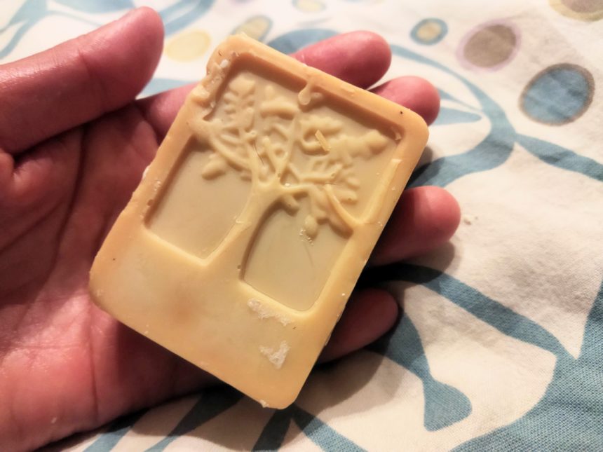 そういえばアンナもソープを作っていたはず! しかも原料の花やハーブ、オリーブオイルも全て彼女の畑でできたもの。そんな折、ちょうどお客様の宿泊もあったので、チェックインのお手伝いの後、料理教室に行く前にアンナの家にお邪魔しました。何種類かあった中、とりあえず選んだのはこの2つ。