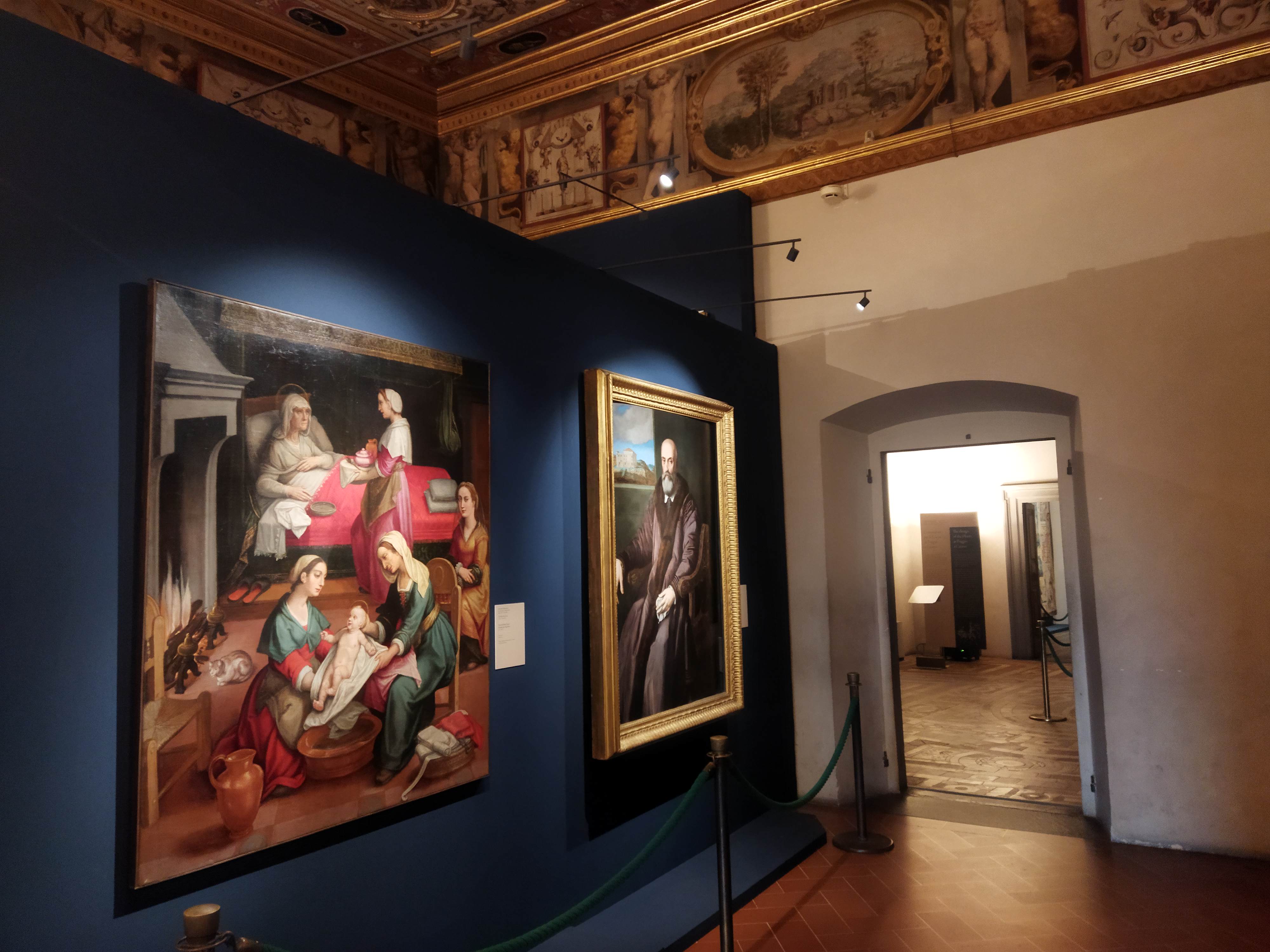 ヴェッキオ宮殿では他にもメディチ家の居住室、エレオノーラ・ディ・トレドの間やフランチェスコ1世の書斎などの装飾も手掛けていますが、展示会は500人の間を含め、博物館のルート内の6室に別れて展示。織物のための下絵、特に動物の描写に優れていたそうで、展示会でも2つの大きな織物の展示がありました。このように名を知られる芸術作品の最終形と元となる素描を合わせて展示することで、作品の裏にどれだけの準備があり、どれだけの人が関わっているのかを知ることができると同時に、その壮大な事業を推し進めたコジモ1世の当時の凄さを思い知ることができます。