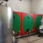 場所はモンテフィオラッレの村からブドウ畑の散策路を歩いて約10分。石造りの昔ながらの建物に到着します。もう1つのワイナリーから比べると少し遠景になるものの、こちらからも美しいモンテフィオラッレの村が別アングルから見られます。オーナーのロレートは長身のイケメン!ですが、話し方がちょっとトスカ―ナっぽくない・・・そう、彼はなんとシチリア人!しかも6年前までは溶接工の仕事をしていてワインはゼロから学んだと言います。好きな犬が同じで友達となった、今の奥さんの実家がここで、この場所に惚れ込んで移住、そして農業をしていた義父から全てを学び、自分たちのラベルでワインを作ることを決めたのは2016年のこと。テイスティングを始めたのはつい最近、2022年からです。