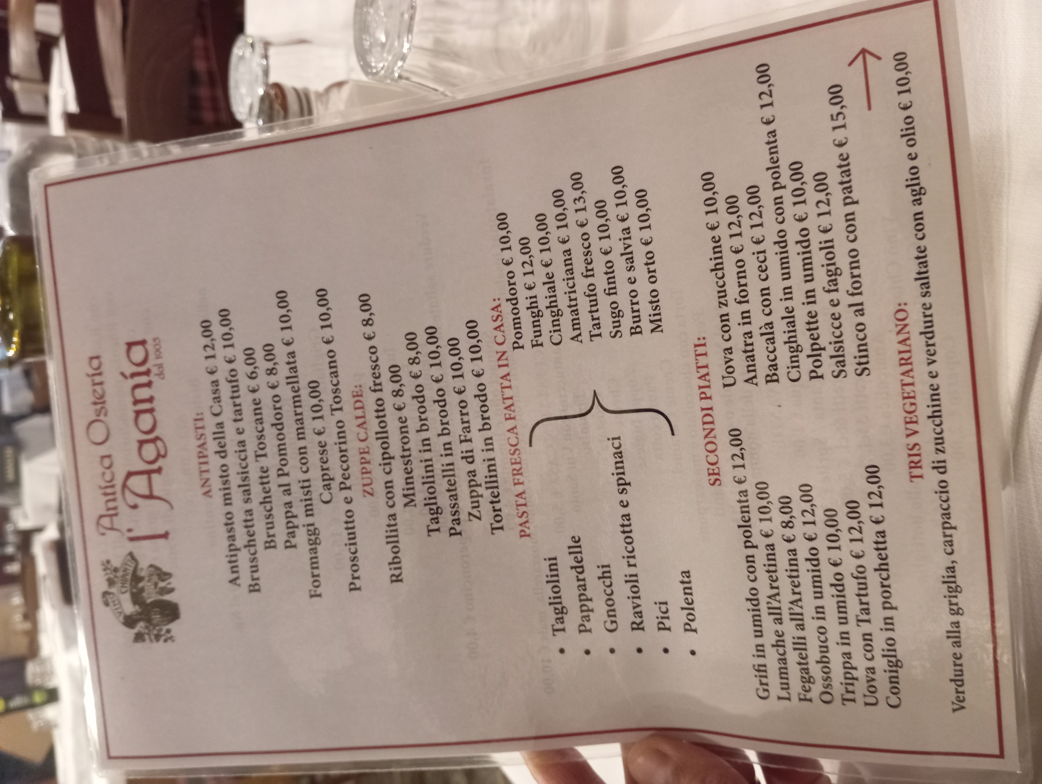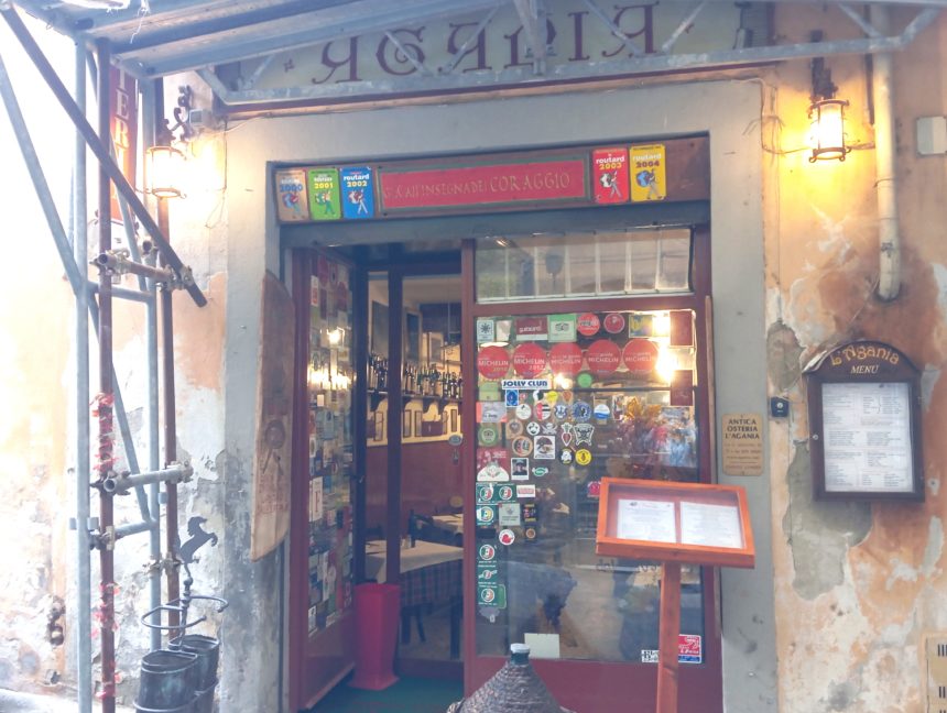 アレッツォには何回も来た事あれど、いわゆる「レストラン」には行ったことはほとんどありませんでした。ゆえに新しくコラボする生粋のアレッツォ人のアパートオーナーにおススメを聞き、そのうちの1つ、ここ Antica Osteria l’Agania に行ってきました! 昔ながらのオステリア、という店名の通り1950年代のままの店構えと内装、メニューも素朴で値段も抑えめの設定。4世代続く、伝統的家庭料理のお店で、お揃いのTシャツを着た男性給士係がチャキチャキと対応してくれます。