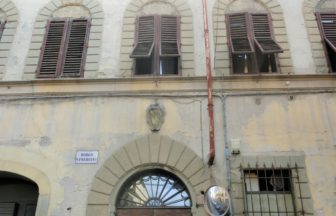 頭がまだ1500年代にワープした状態で外に出ると、多くの観光客で一気に現実に戻りました。そしてサン・ロレンツォ聖堂の方へ向かうとふと右側に、重厚な格子が取り付けられた小さな窓が・・・そこがミケランジェロが身を隠していたあの部屋。時にこの窓の隙間から外を眺めては、通り行く人の顔や体も参考にしていたのではないか?とのガイドさんのコメントを思い出し、また妄想にふけったのでした・・・。