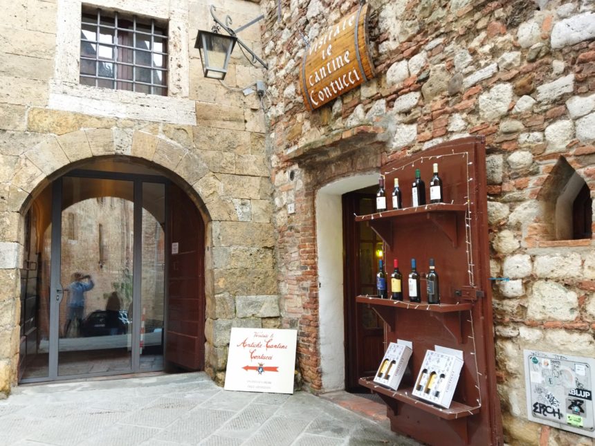 厳密にはオルチャ渓谷エリアではありませんが、ピエンツァからは車でもバスでも20分のモンテプルチャーノは、お客様からもリクエストの多い村です。映画「トワイライト・サーガ、ニュームーン」の舞台でもあり、またワイン好きにはノービレワインでよく知られていますね。通常、ワイナリーというとブドウ畑に隣接するものですが、モンテプルチャーノの特徴は旧市街の中にあること。そしてそのワイナリーを開館時間なら無料で自由に見学ができるのが、このコントゥッチです。以前は他にも無料見学できるワイナリーがあったのですが、現在は予約・有料ツアーが多くなった中、とても貴重な存在です。