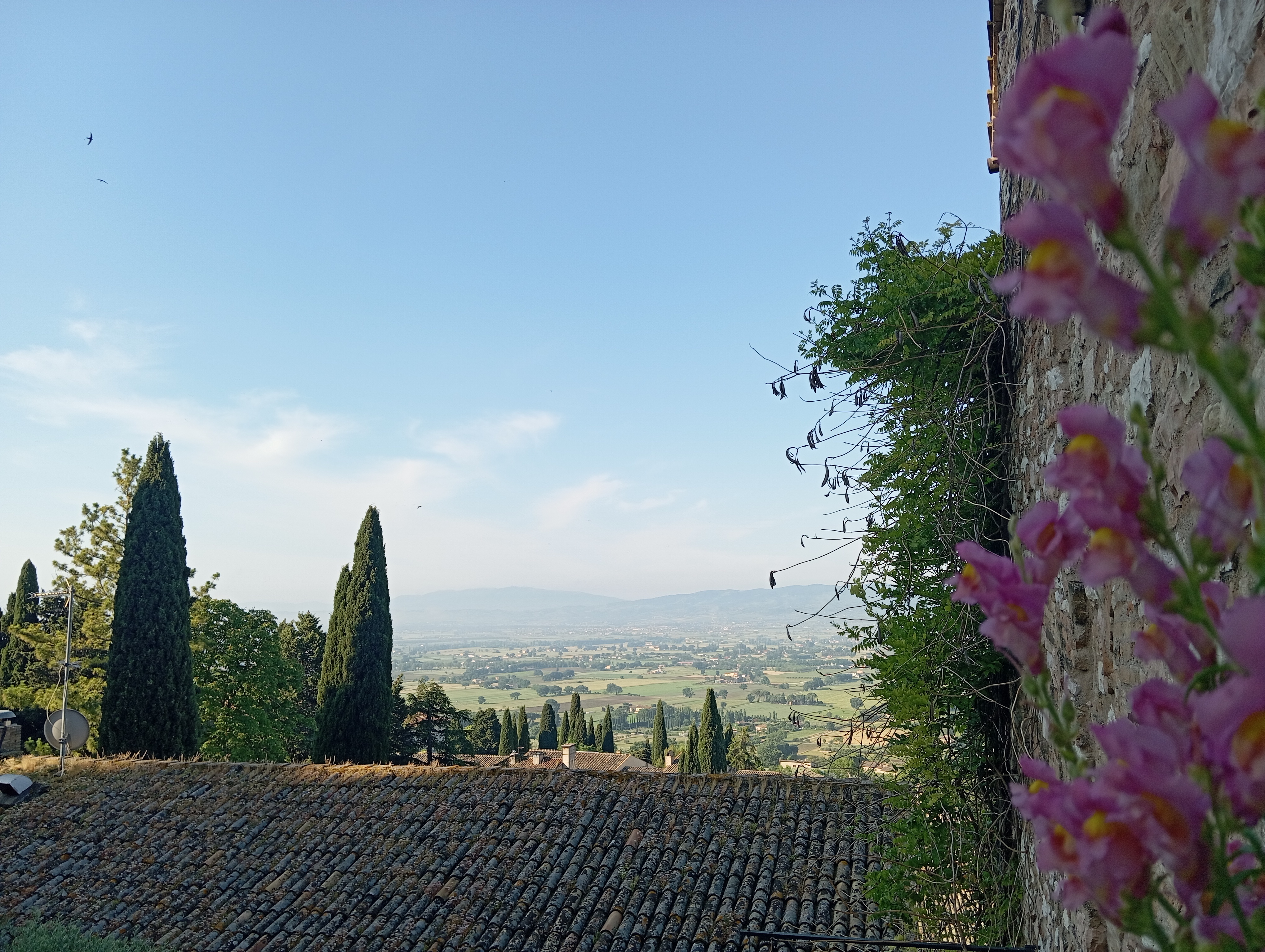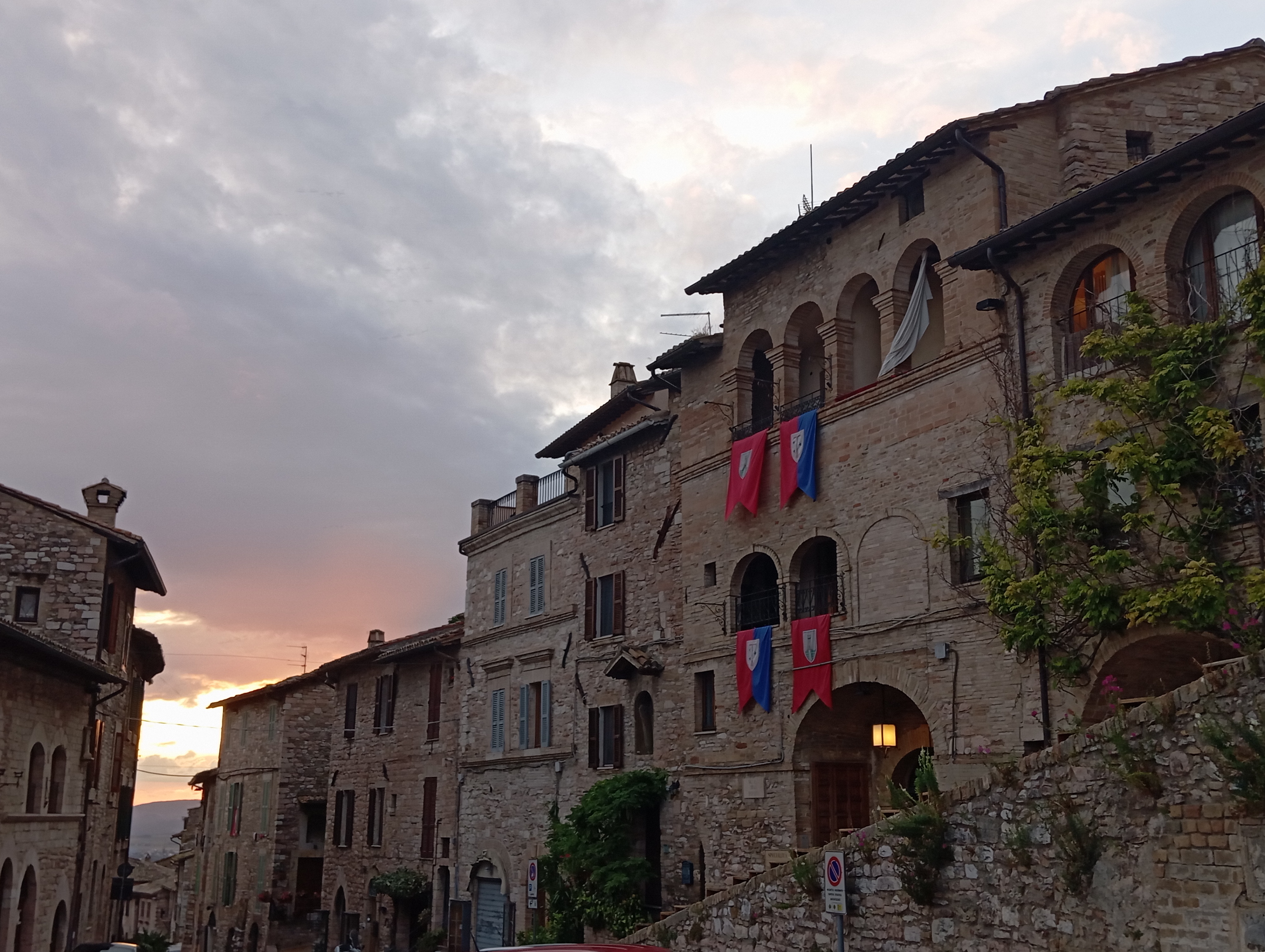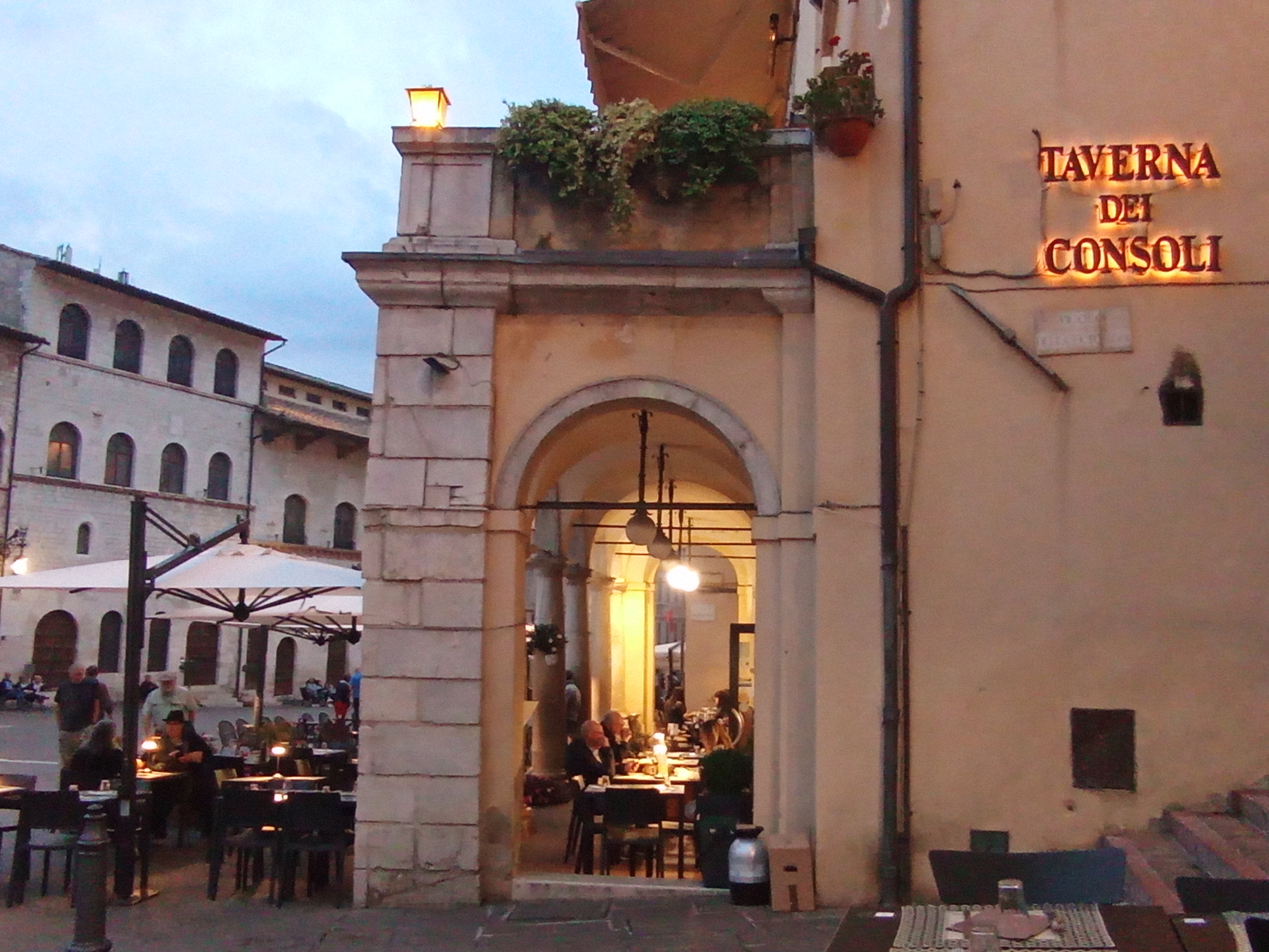 そのほかの見どころとしては、コムーネ広場にあるサンタ・マリア・ソプラ・ディ・アッシジ教会。ギリシャ神殿のような外観なので、今まで教会だとは思っていませんでした。広場には大きな噴水あり、また飲食店も何軒もあります。私も到着した晩は、この広場を眺められる Trattoria degli Umbri で夕食を取りました。